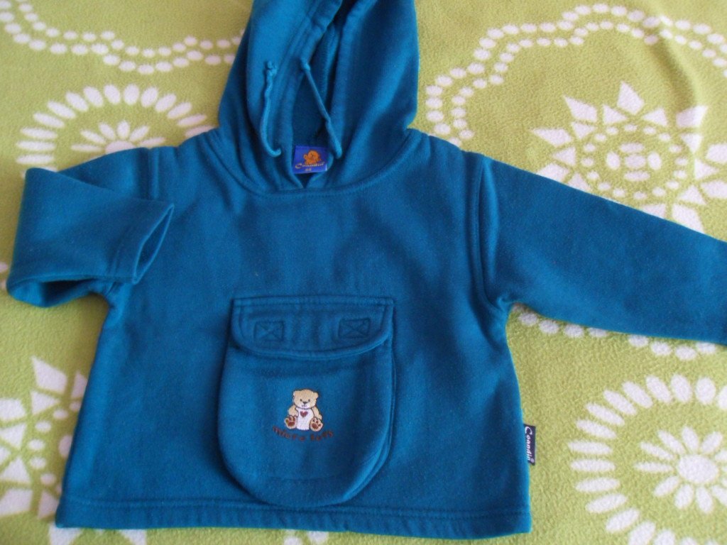 predam tmavozelenu mikinku velkost 86, dlzka 36 cm, sirka 34 cm, dlzka rukava 33,5 / 25, malinke zmolky od prania, cena 3,50 eur