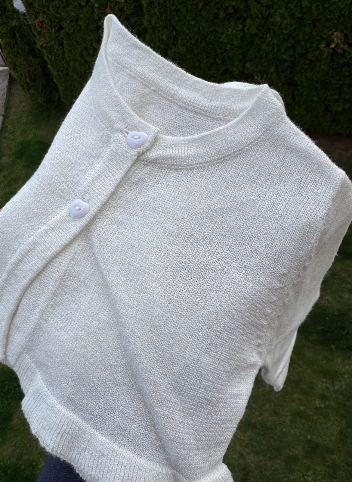 Krásne bolerko svetlo-krémovej farby pretkávané lesklou nitkou na dva gombíky s volánikom. Nové, bez vysačky. Vhodné na akúkoľvek príležitosť. Farba ako na druhej fotke.