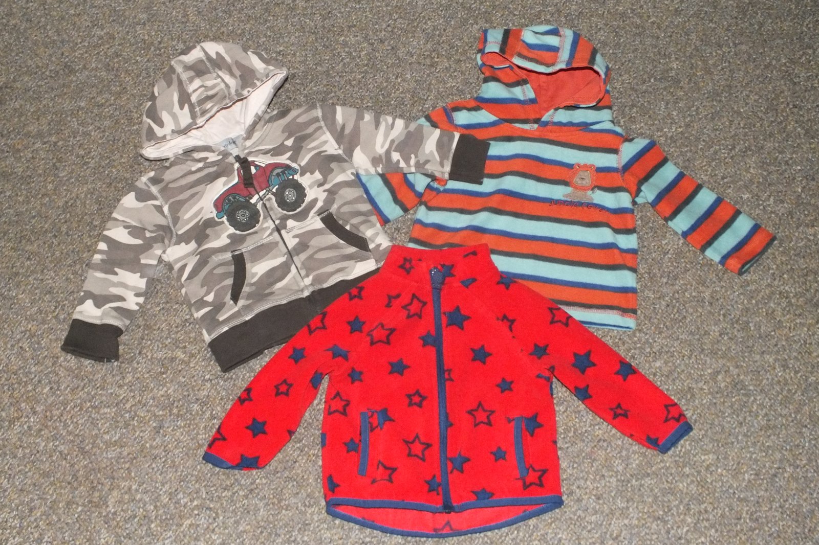 Ponukam na predaj tri krasne mikiny pre chlapca. Kupovane vsetky v IE, kvalitna znacka early days. Cervena mikinka v top stave, ani raz sme ju nestihli obliect, je len preprana. velmi pekna, makucka. ostatne dve oblecene par krat, bez akychkolvek poskodeni, bez zmolkov, nevyblednute, jedine to auticko uz po prvom oprati ostalo malicko bledsie, inak je mikinka v top stave. Cena 6 eur.
