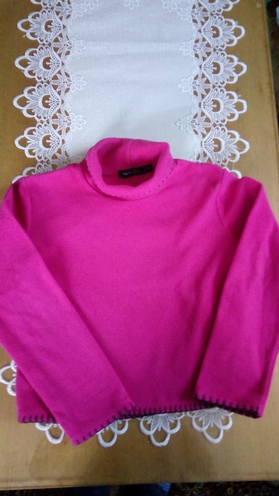Farba cyklamenova. Mikinka je v nosenom stave bez poškodenia. Je tenšia .