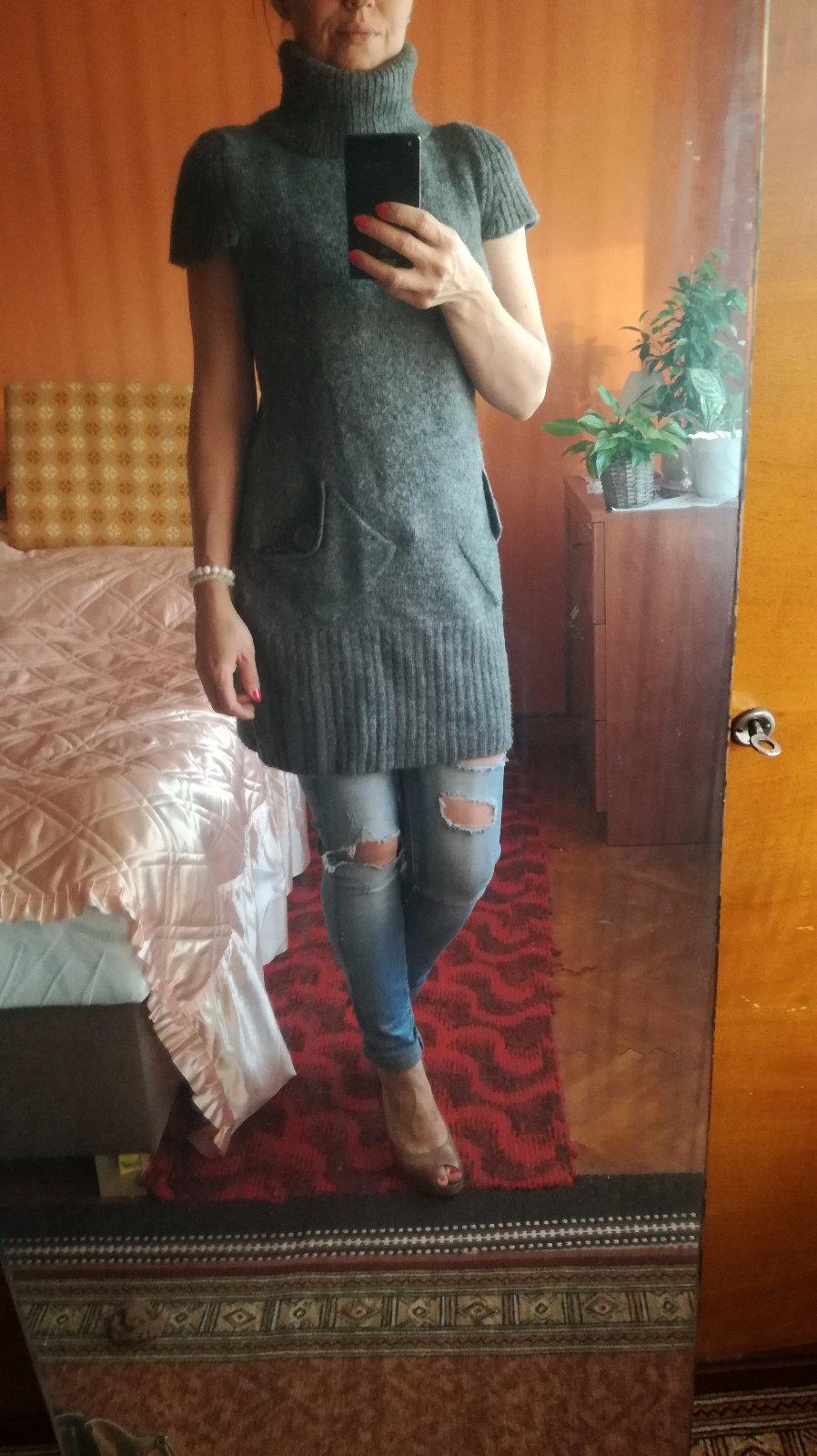 Predám krásny pleteny pulovrik na zimu. Mozno nosit aj ako saty. Pekné, neposkodené.