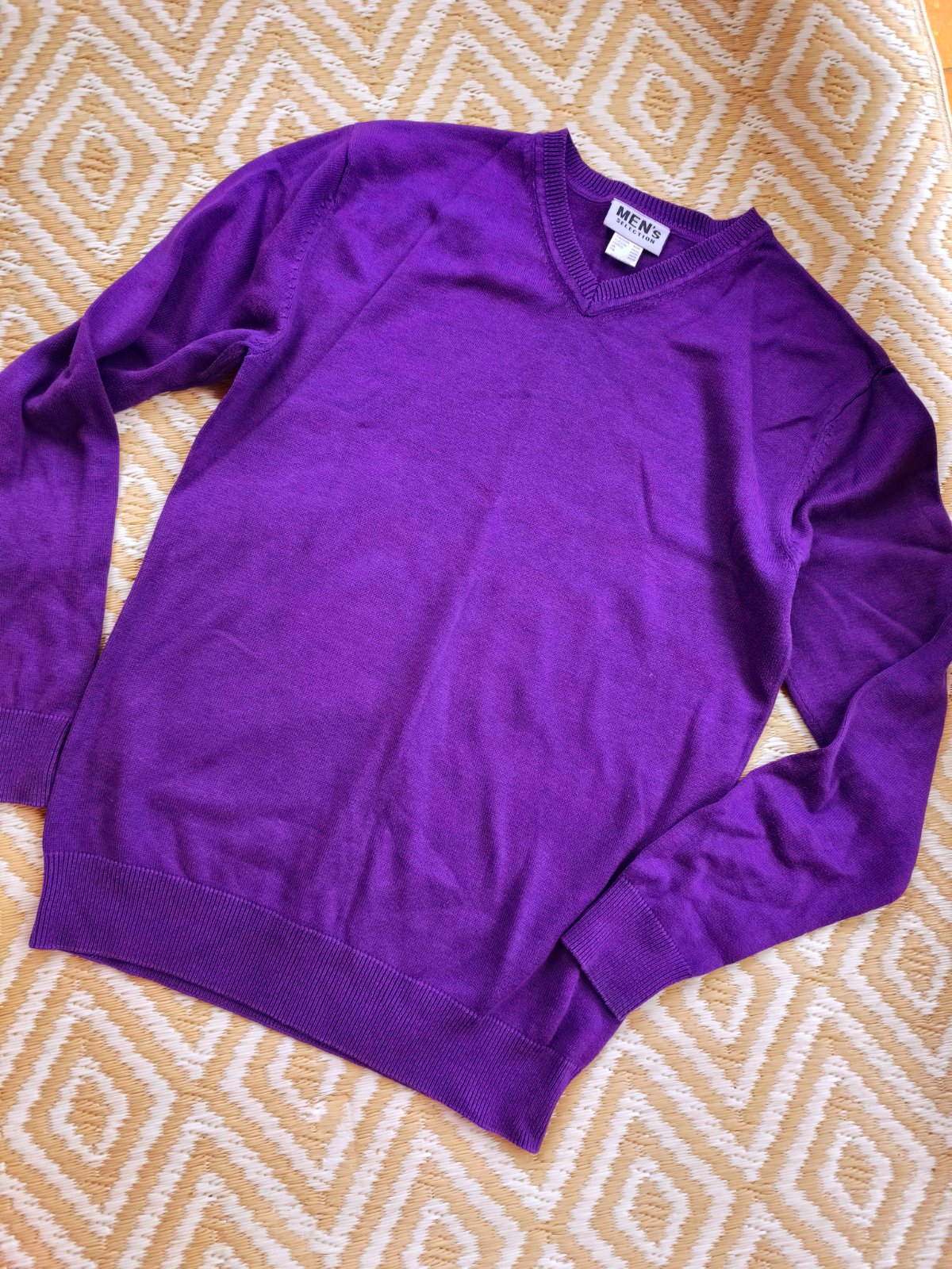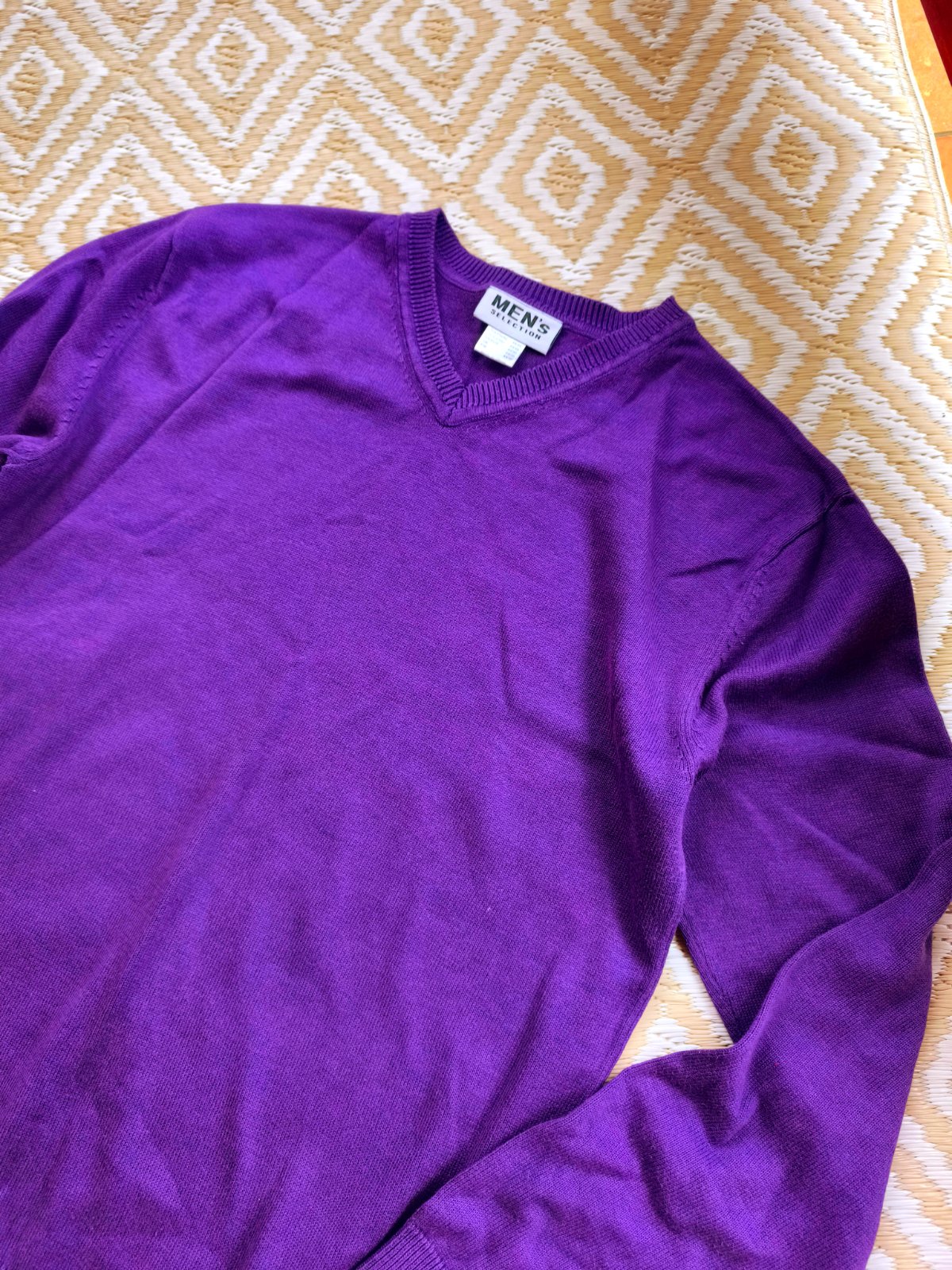 Fialový tenší pánsky svetrík, aj na košeľu, 2-3 krat oblečený, bez poškodení.