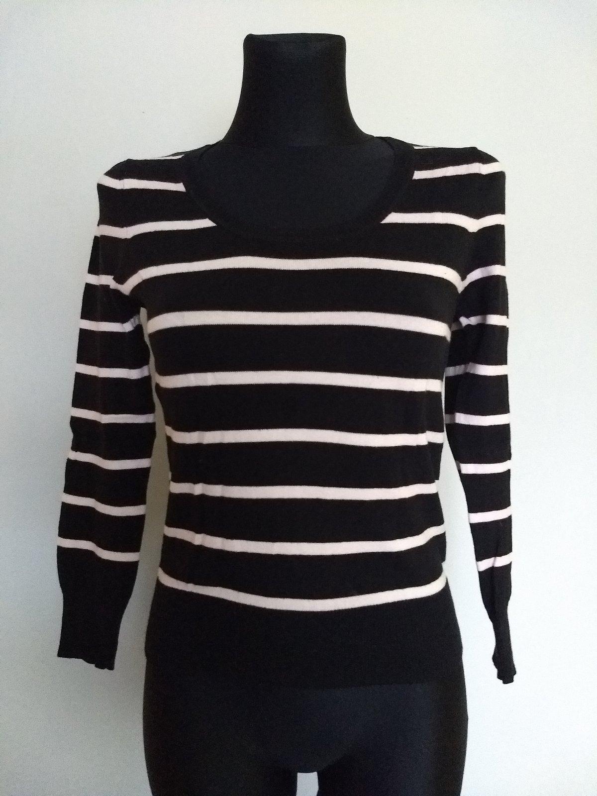čiernobiely: pod pazuchami 43 cm, pás 37 cm, elastické, natiahne sa, dĺžka 57 cm, šírka ramien 33 cm, dĺžka rukáva 56 cm