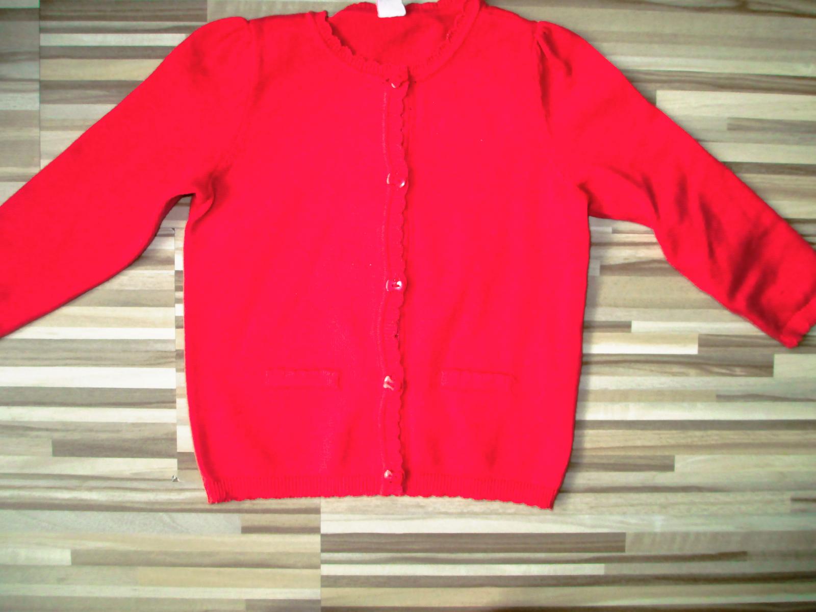 Krásny svetrík, len pár krát oblečený. V top stave bez akýchkoľvek poškodení. Farba červená ako na poslednej foto. Veľkosť písaná 92. Cena 1,50 €.