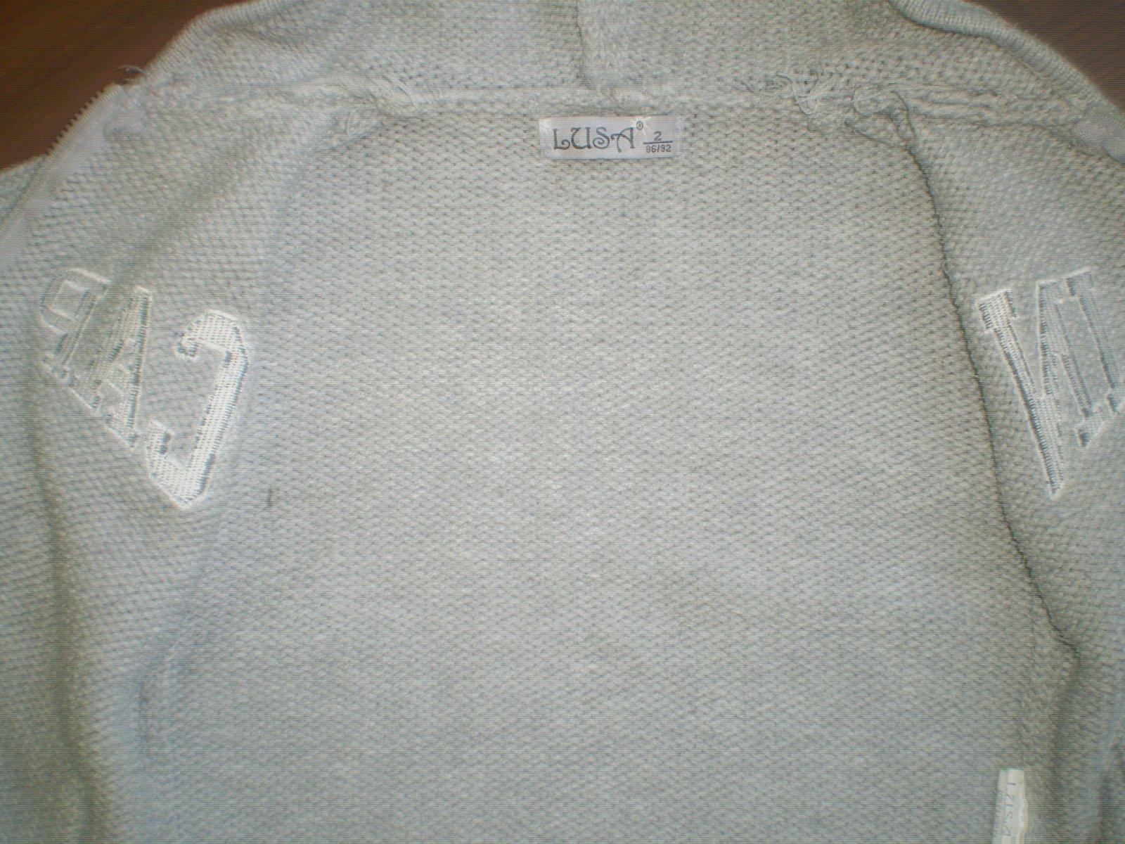 Predam svetrik sedej farby na zips s kapucnou,noseny ale zachovaly bez poskodenia,velkost 86/92.cena 4eura plus posta,kukni dalsie moje inzeraty.