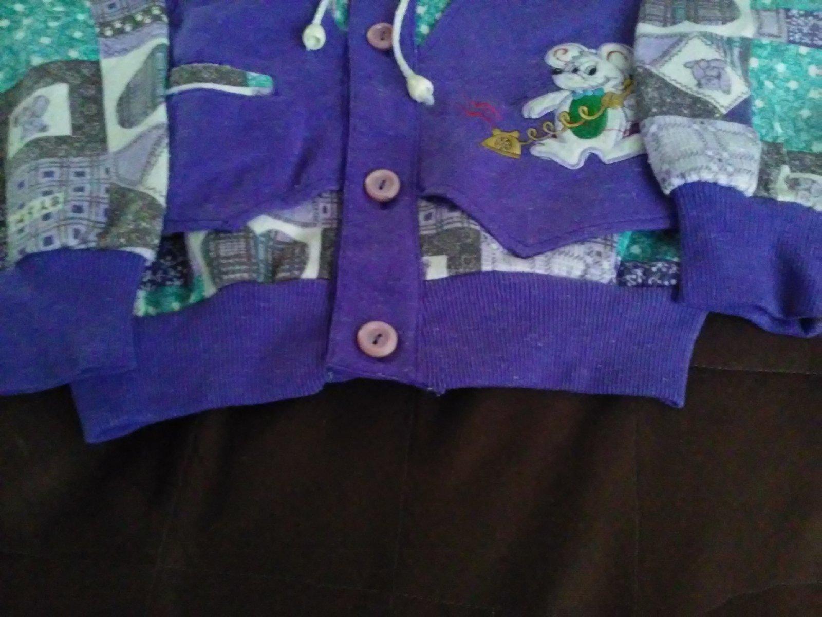 Predám nosený svetrík na gombíky. Materiál je taká tričkovina, nie je nejaký zateplený, skôr tenší. Je ožmolkovaná, a aj šnúročka na krku je povyťahovaná, farba je trocha vyblednutá. Takže skôr vhodná na donosenie.