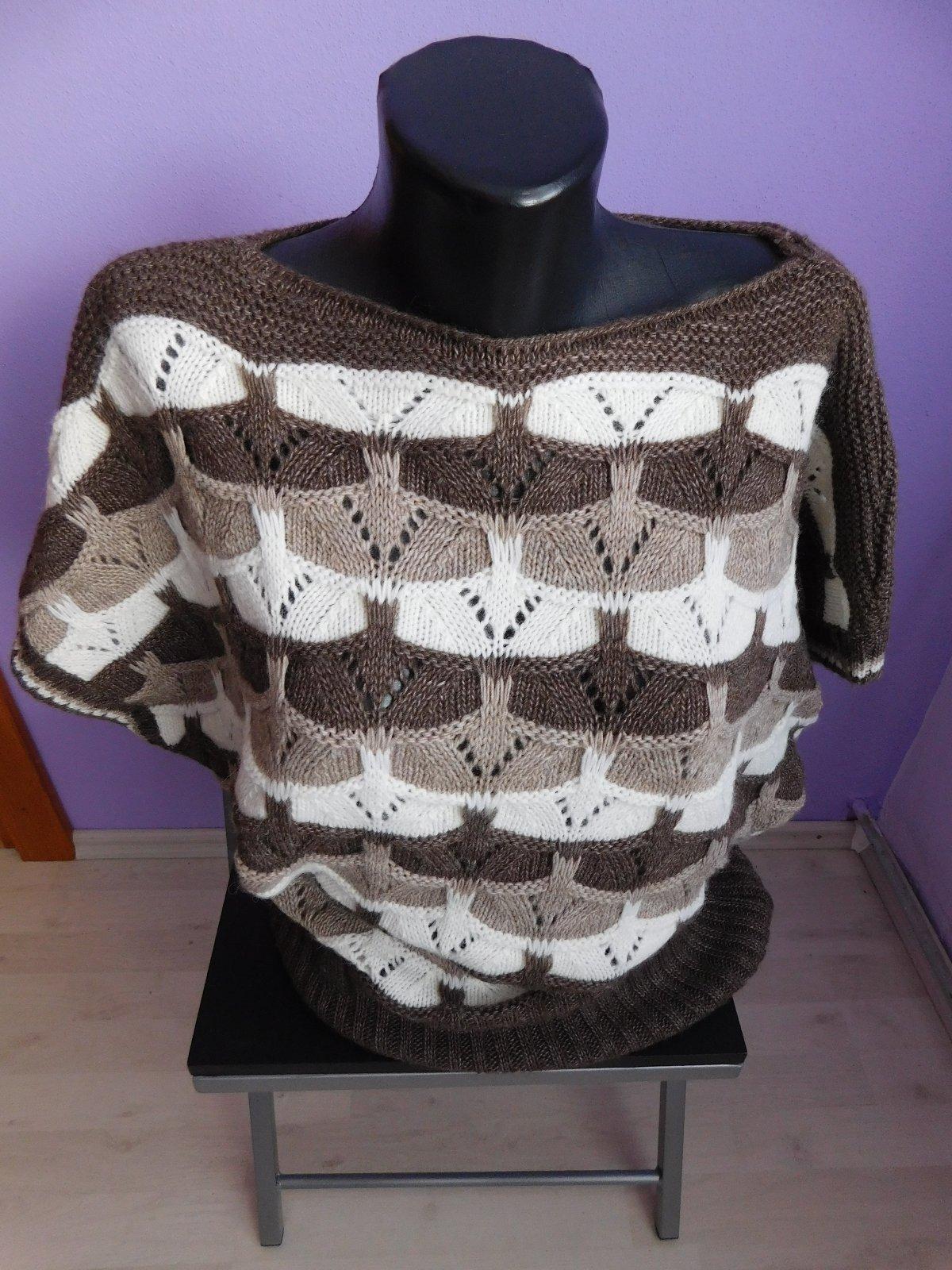 sveter tmavohnedej farby v dobrom stave, zaujímavo riešený, veľkosť je uvedená L, farba viď fotka, dĺžka 82 cm, šírka pŕs 2x44 cm, dĺžka rukáva 62 cm cena je uvedená bez poštovného