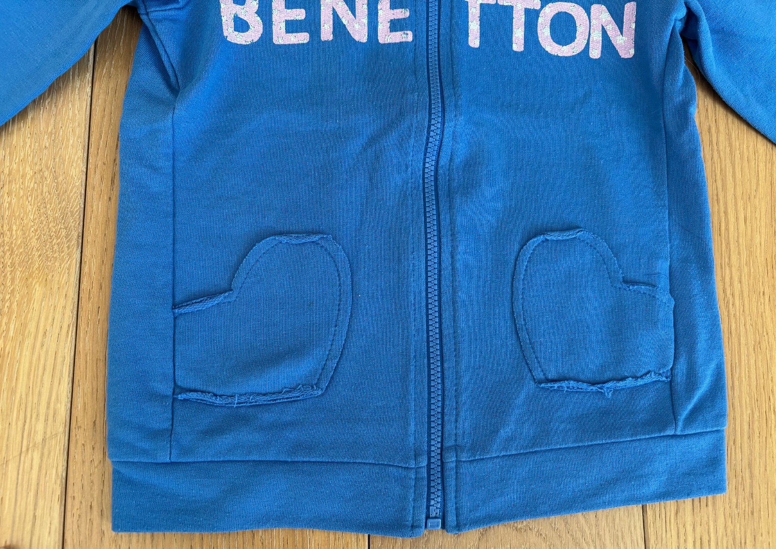 Pekný stav, mikina s ružovým nápisom Benetton a kapse v tvare srdiečok
