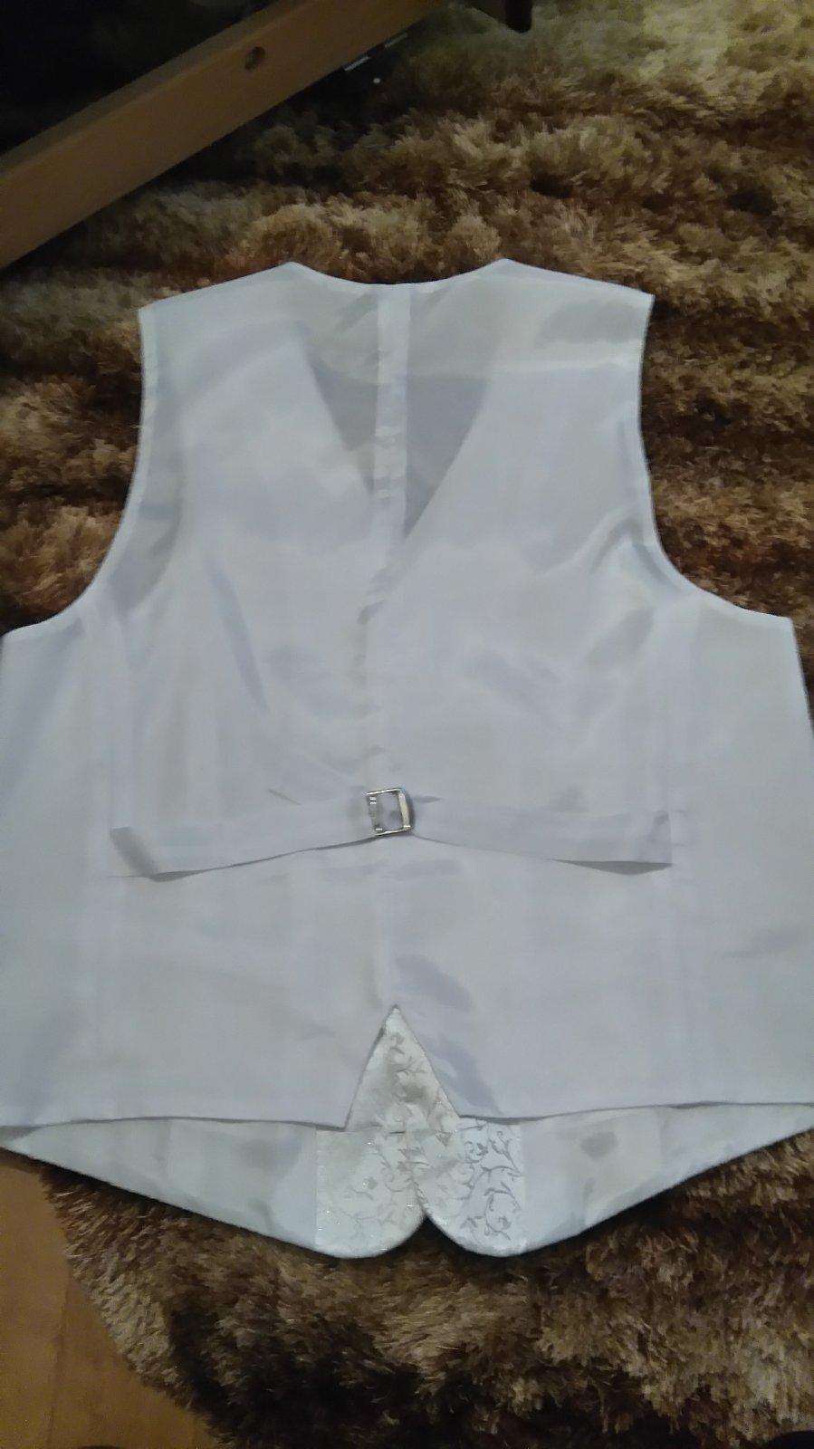 Predám svadobnú vestu, ktorú mal manžel na svadbe. Nie je tam uvedená veľkosť.Sedí na štíhlejšieho muža s výškou okolo 184 cm, ktorý nosí veľkosť L, a číslo košele 40/41/42. V páse je vzadu pracka, takže pás sa dá regulovať. K veste patrí kravata a vreckovka so náprsného vrecka na saku, sú z rovnakého materiálu ako vesta. Bez poškodení. Komplet bol použitý iba raz.