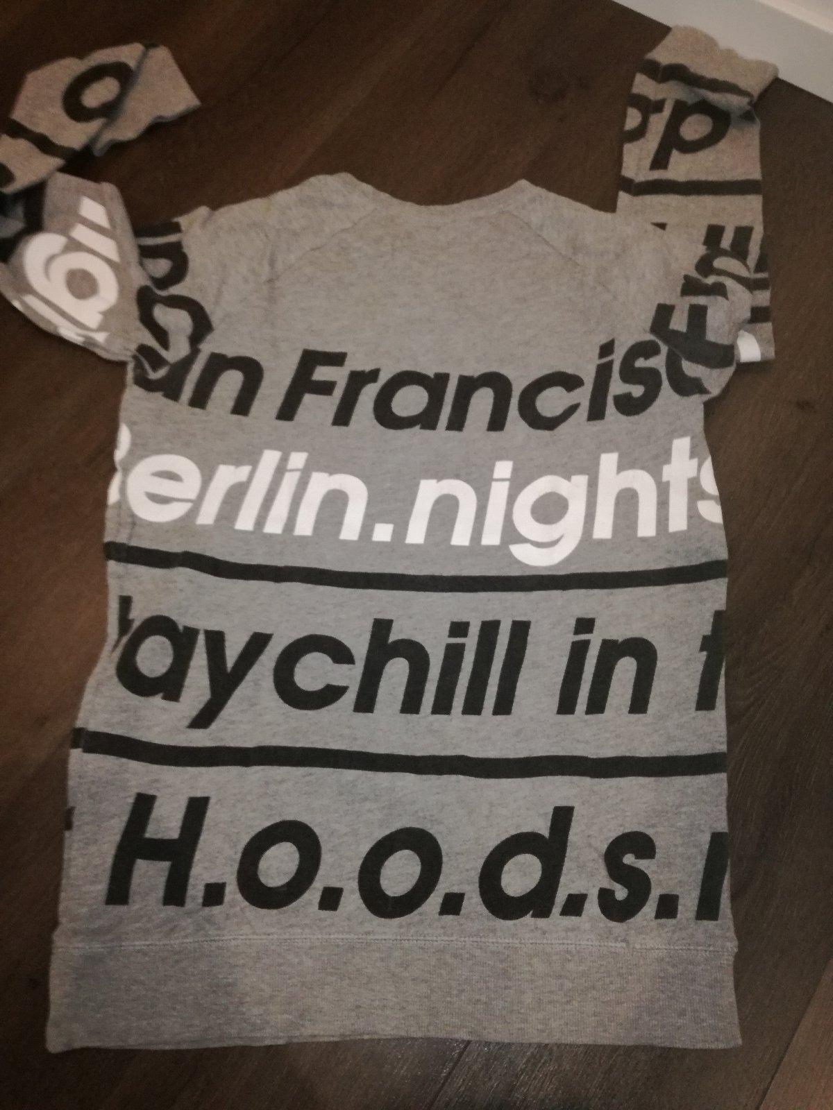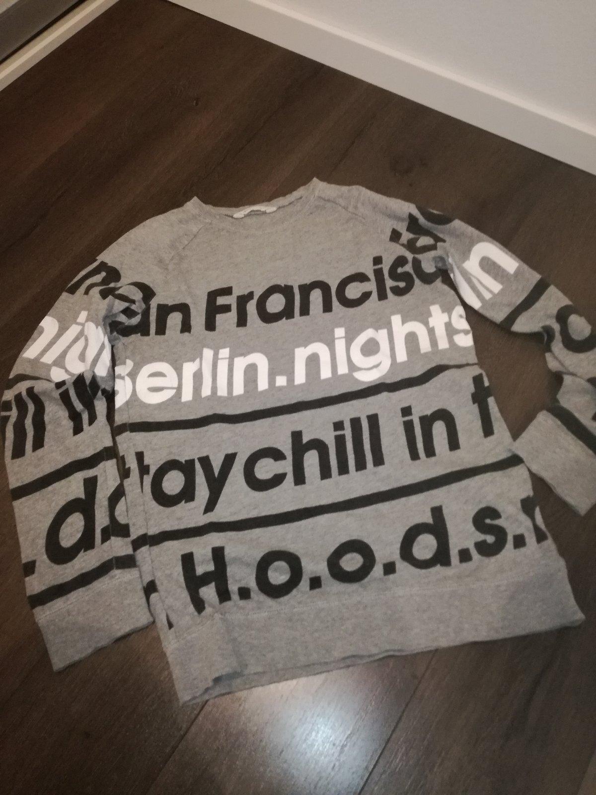 Mikina vo veľkosti 158/164,nosena..syn sa na niečo napichol...tak je tam diera...na vonku poslúži ešte určite☺