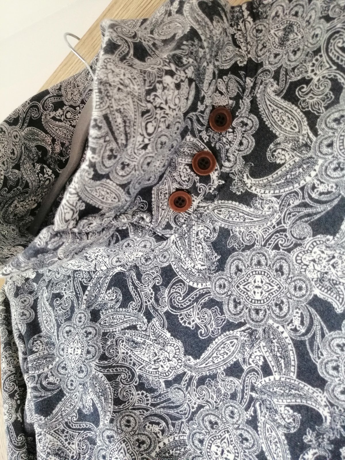 Predám dámsku mikinu s kvetinovým vzorom. Mikina sa oblieka cez hlavu a v oblasti krku sa nachádzajú gombíky pre formovanie stojačika (goliera). Material mikiny je teplejší, je určená skôr na chladnejšie počasie. Mikina je nosená minimálne, je bez akéhokoľvek poškodenia, žmoliek.
