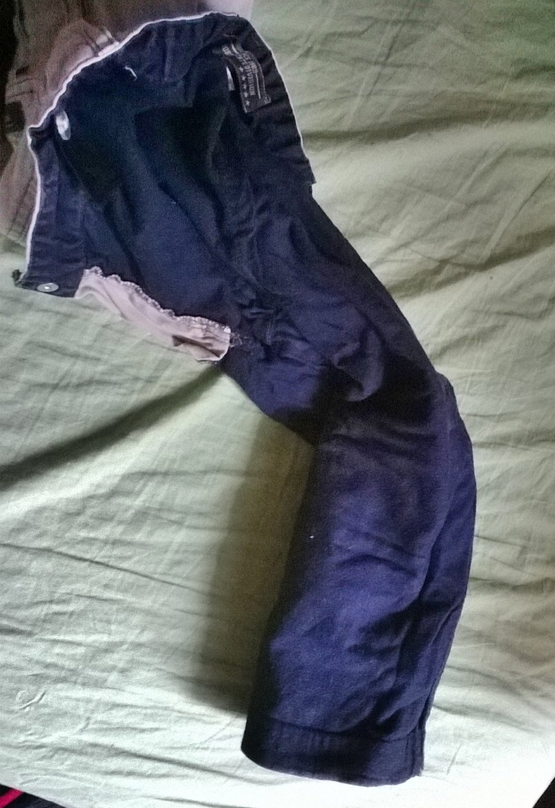 Super nosený stav, vhodné na chladnú jeseň. Celková dlžka 52cm. V páse sa dajú regulovať na gombíčky, + prikladám rifle zn.Cherokee k nim gratis. Odporúčam :-)