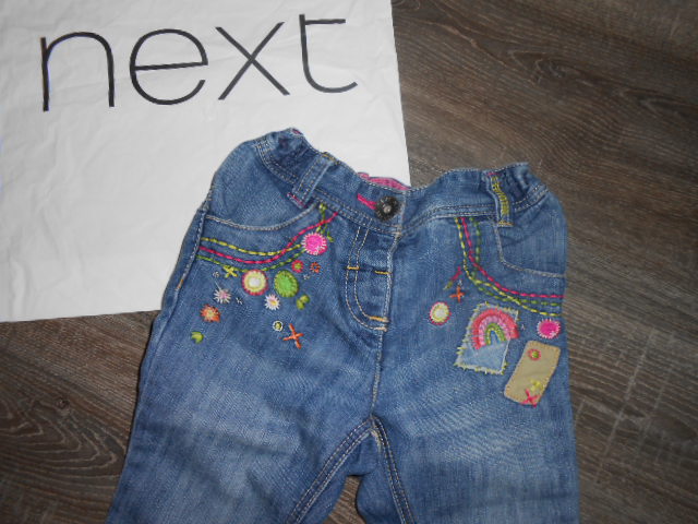 Next krasne dievčenské rifle so vzormi vo velkosti 866 na 12-18 mesiacov, dlžka je 46cm a v páse je stahovaci pas takže si ich upravite ako potrebujete...bez poškodenia