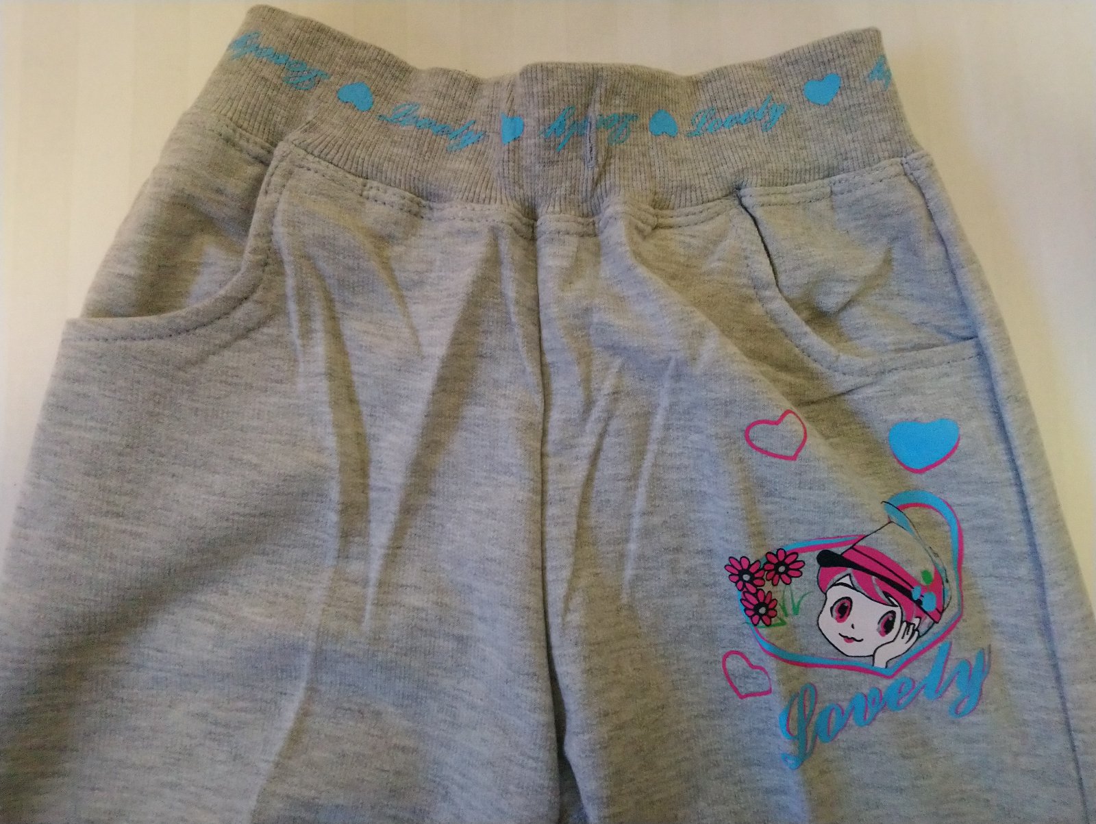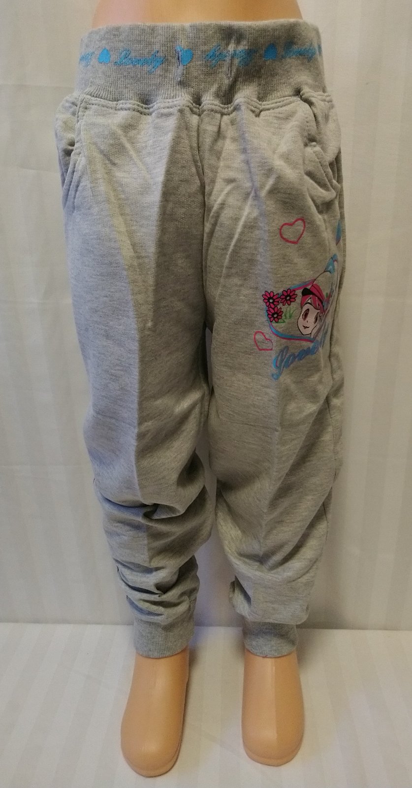 nové svetlo sivé tepláky v páse široká guma s potlačou, nohavice zakončené patentom, vrecká, motív Lovely, vhodné jar až jeseň,
