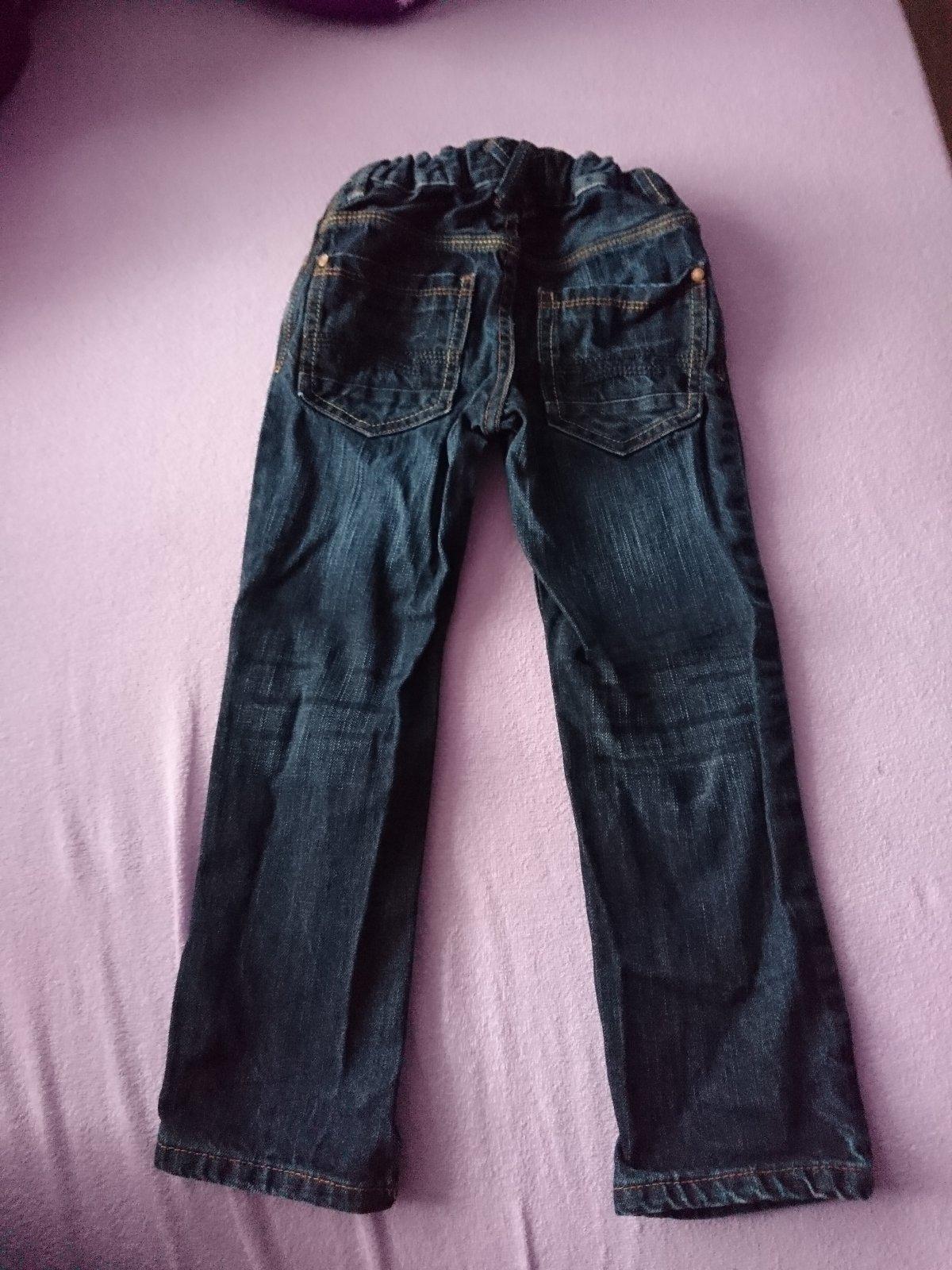 Zateplené rifle PALOMINO v dobrom stave bez poškodenia, veľkosť 110, pás na gumu a šnúrku, vrecká, podšité flisom, teplé ROZMERY: dĺžka-62cm, od rozkroku dole-43cm, pás-2*27cm až 30cm