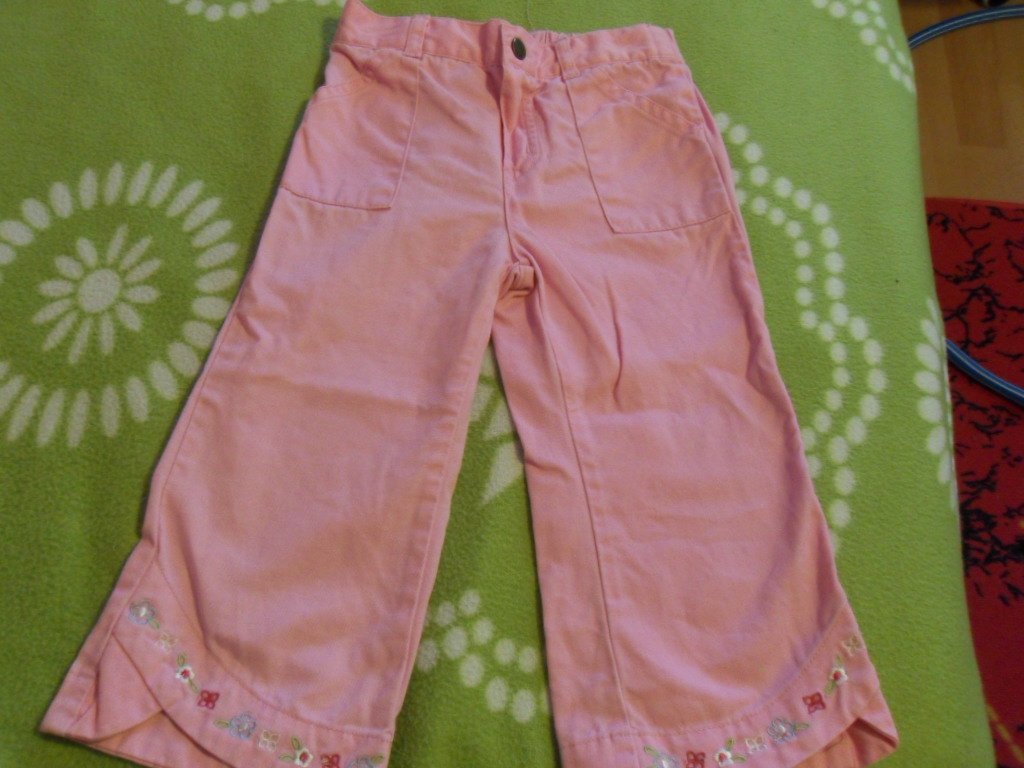 predam milunke platene gature na 24 mes.bez poskodenia, dlzka 49 cm, dlzka od rozkroku 30,5 cm, sirka pasa v klude 24 x 2, pas v zadu guma v predu cvoka,na spodu milunke kvietocky,cena 4,50 eur