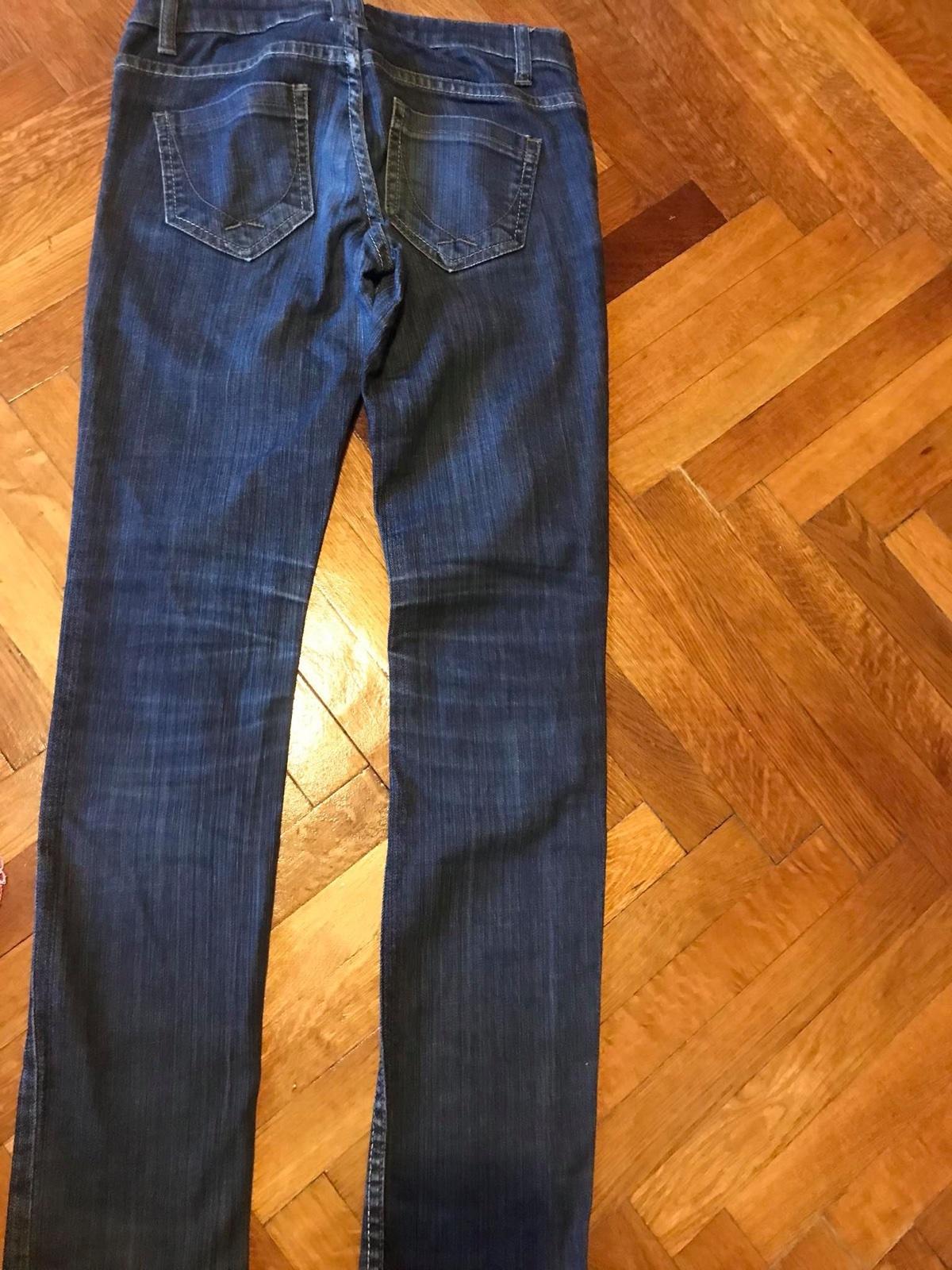 Málo nosené, stav ako na foto, vo vnútri sťahujúca guma v páse. Spodok riflí mierne do zvona