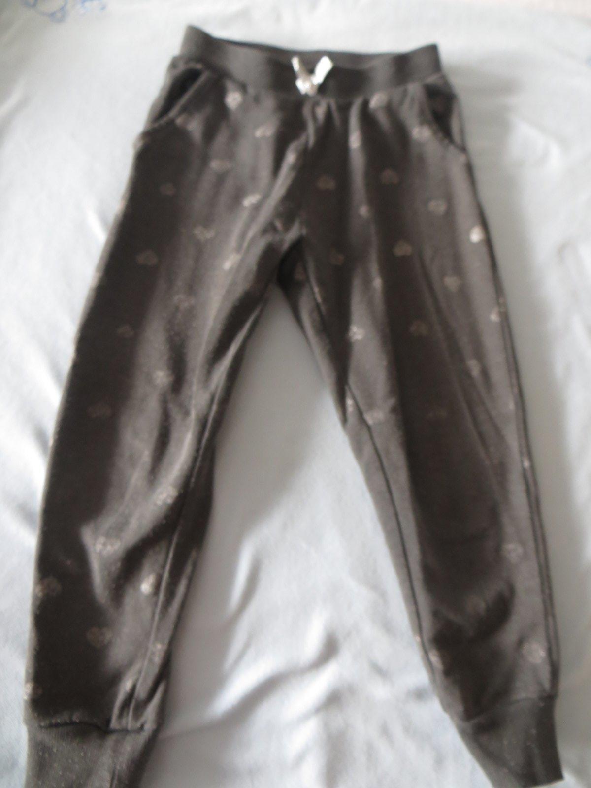 Predám tmavošedé tepláky so striebornými srdiečkami č.116. Bez fľakov. V cene je poštovné.