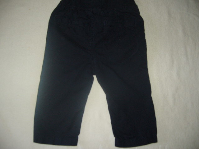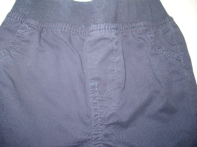 Tmavo modre nohavice 100%bavlna.Boli par krat oblecene,su bez poskodenia.V pase je 3cm siroka upletova guma ktora v klude meria 20x2 Dlzka nohavic aj s pasom je 39 cm.
