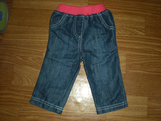 Rifle sú v 100%-nom stave bez poškodení či flakov.V predu okolo vreciek sú zdobené vyšívanými kvietkami.Velkost je písaná od 6-9 mesiacov.Dlžka riflí je-38 cm.