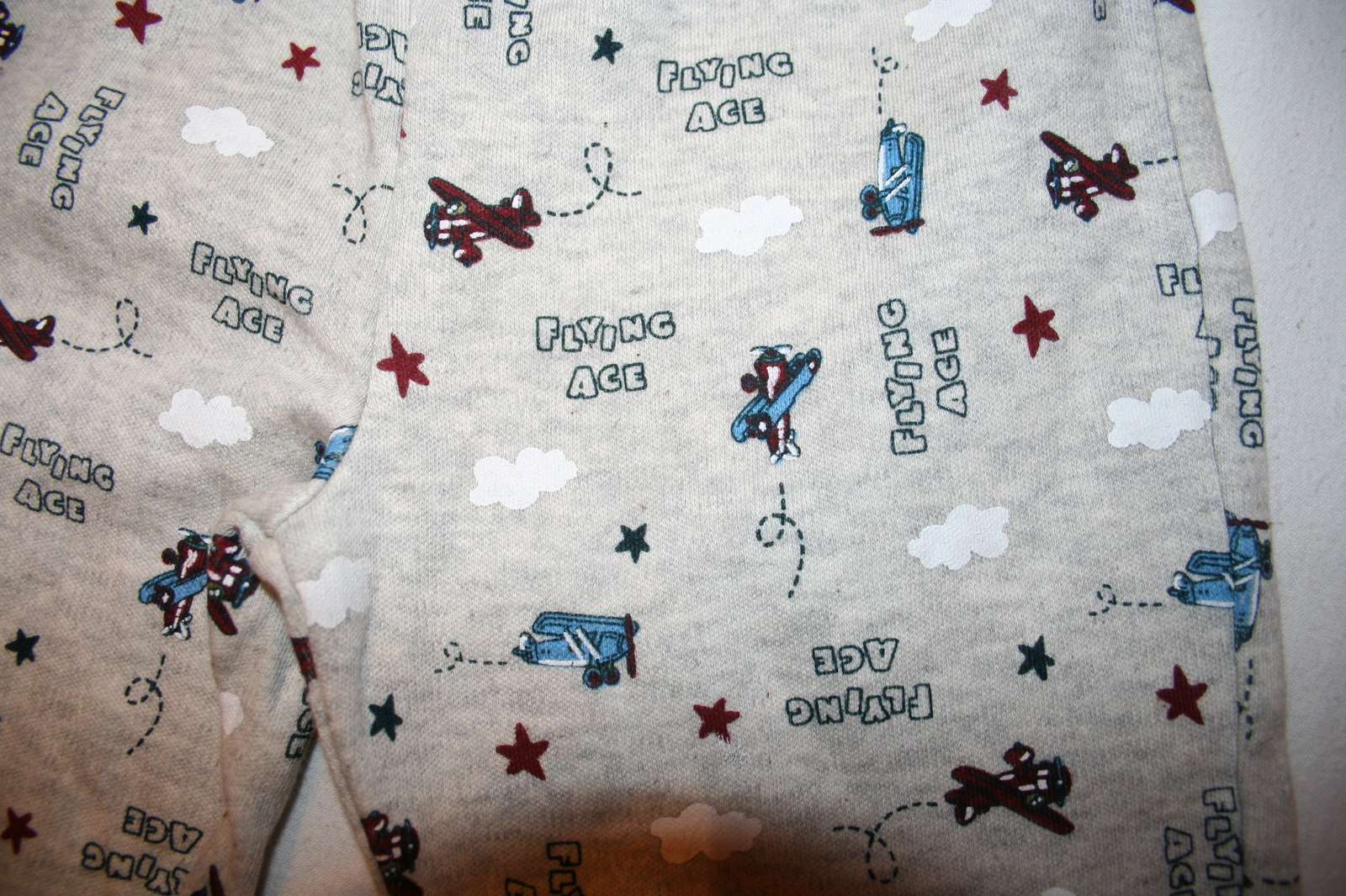Krásne tepláčiky s lietadielkami. Veľkosť písaná 56, ale podľa mňa 62 a možno aj 68