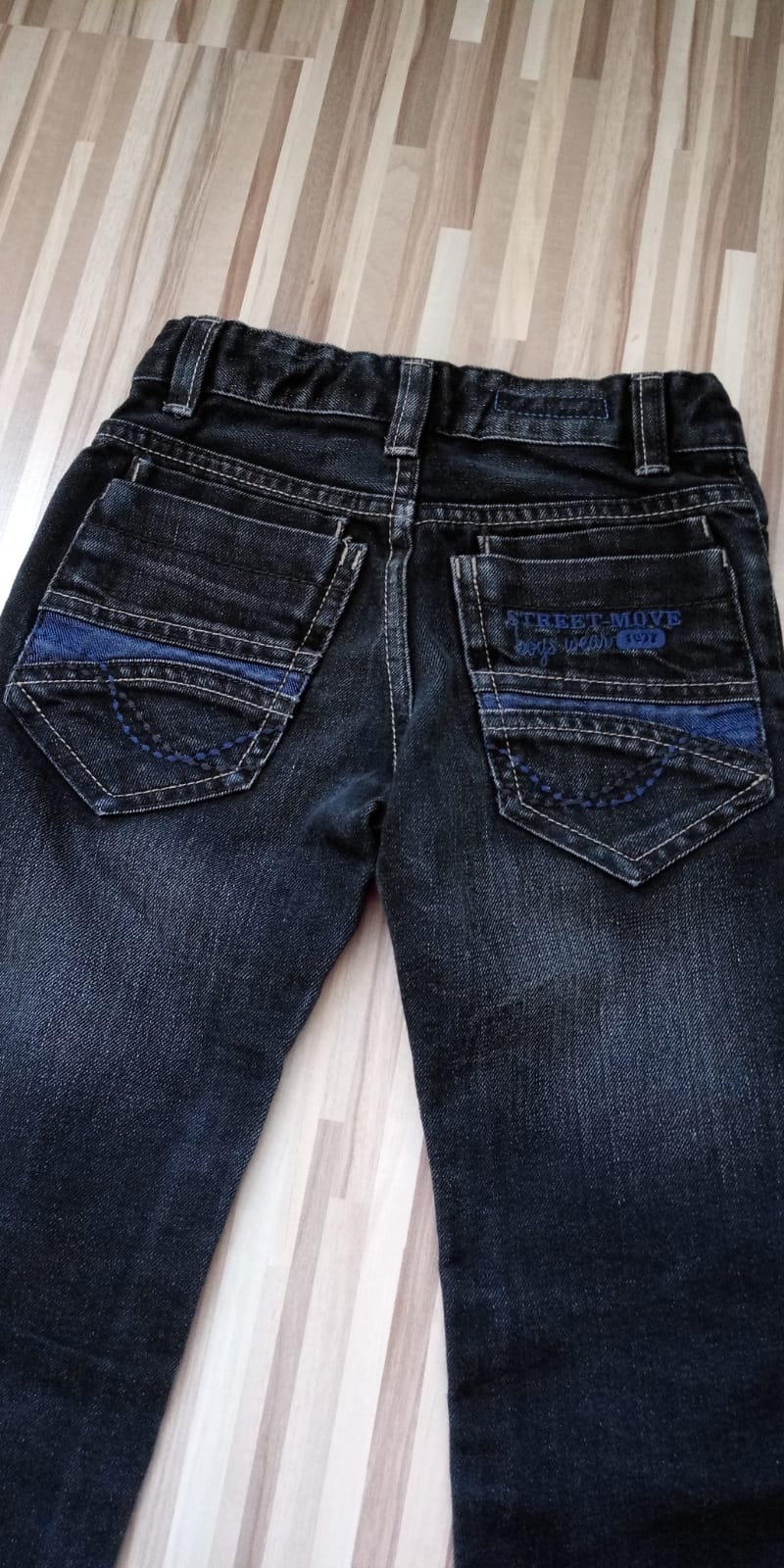 jednoduché rifličky,ale velmi pohodlné a praktické - "bielený" efekt,,dobre sa nosili a kedže sme mali radi žabky , mali sme ich radi ...ponosíte podla mna aj ako 110