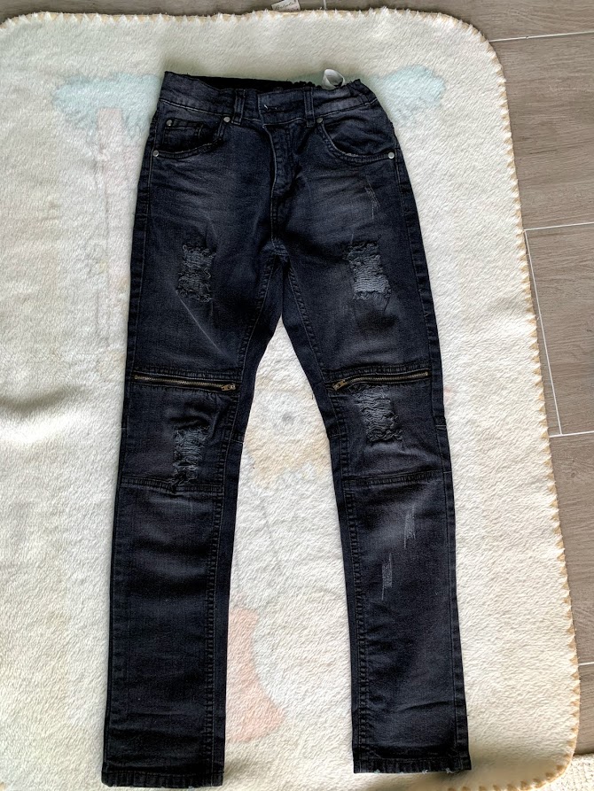 Čierne slim rifle. Prešívané, so zipsami. Nezničené, ako nové.