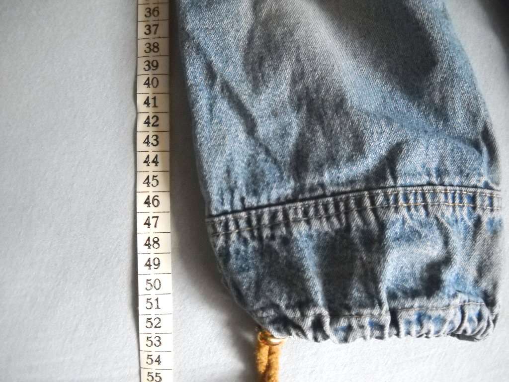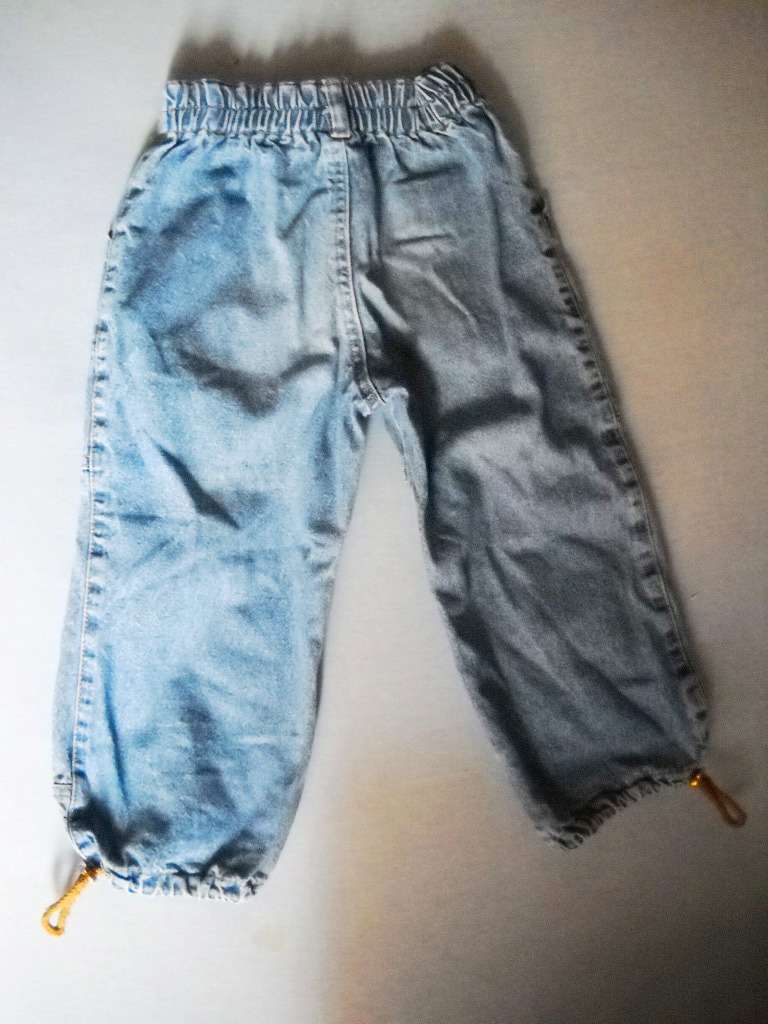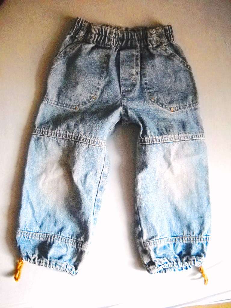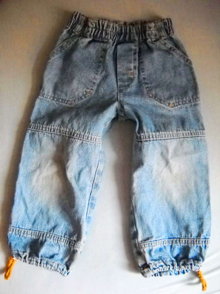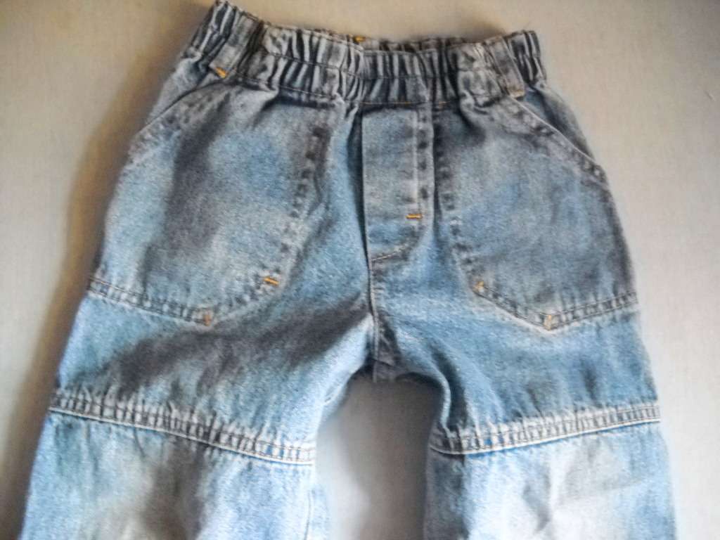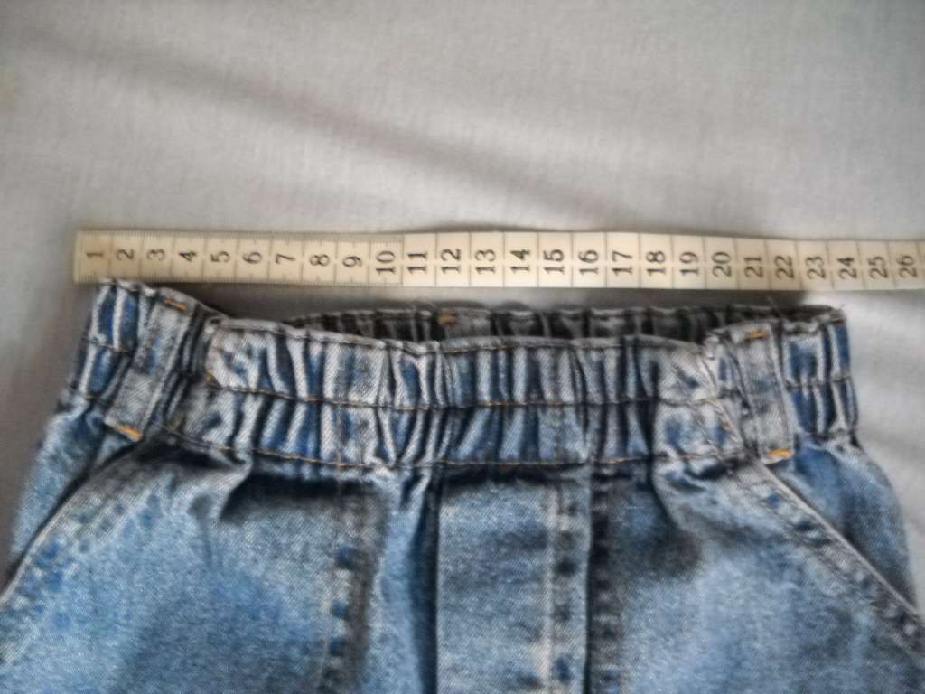 Dobrý nosený stav, na kolenách jemne vyblednuté. Dĺžka 53cm, pás v nenatiahnutom stave 23cm.