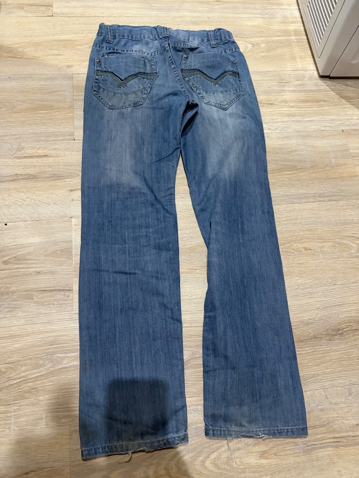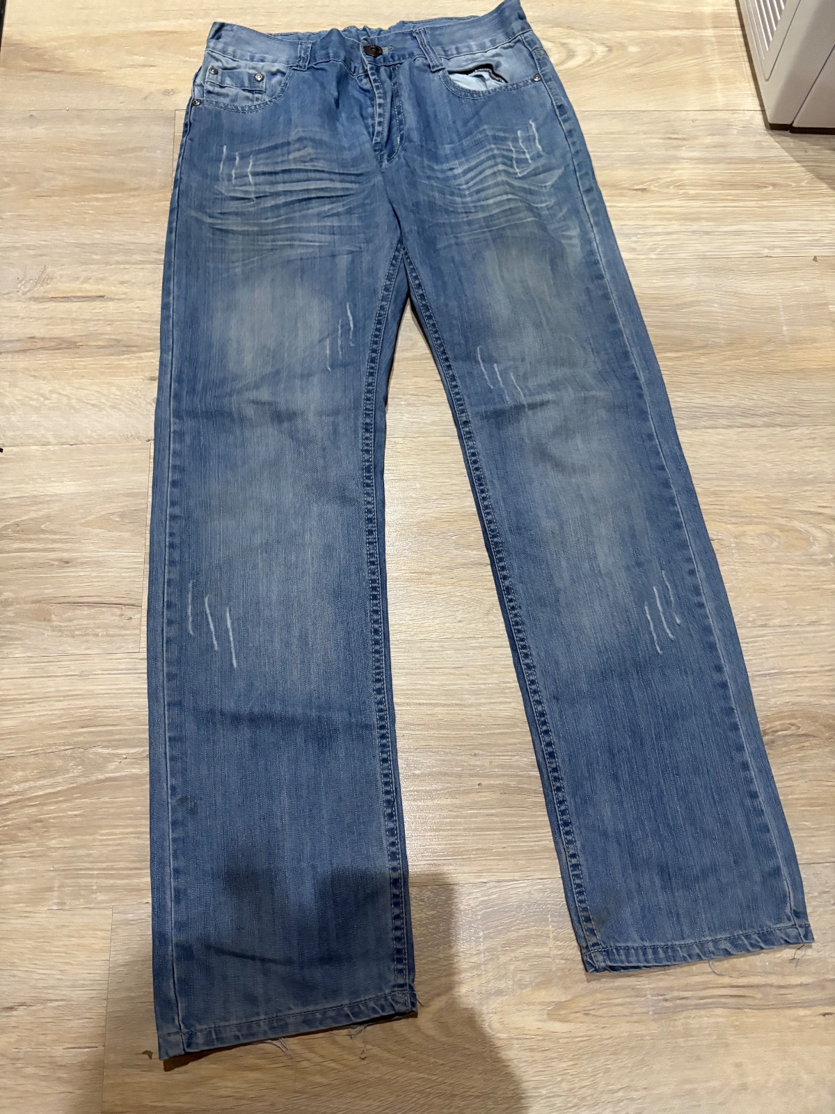 Darujem ku nakupu aspon11e rifle su dobry noseny stav len spodky trochu odrete vid foto a na zadnej strane dole maju nejake ciarky malo by to zist inac ok zapianie gombik,zips,vrecka da sa stiahnut gumkou pas.celkova dlzka101,8cm,od rozkroku76,6cm,pas36,6cm..zn;classical...posta1e obycajne oby skr vza