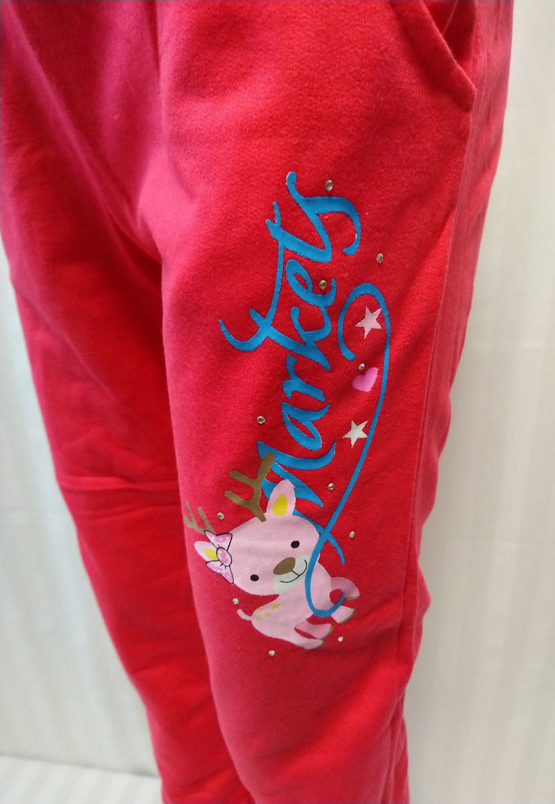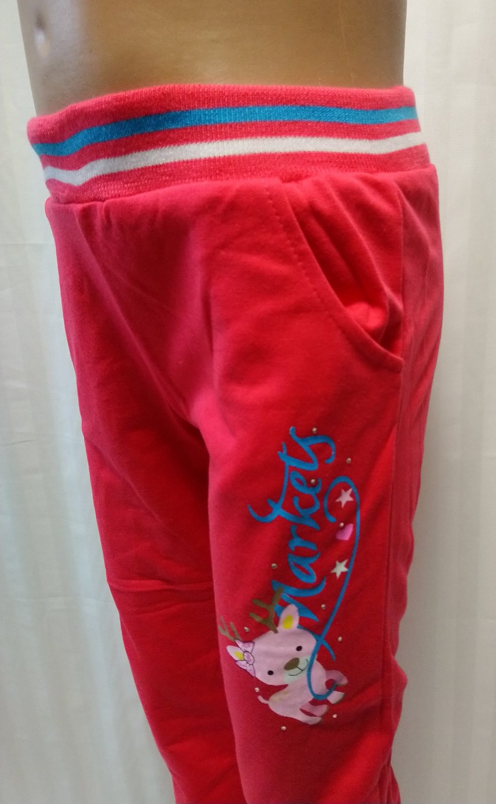 nové dievčenské sýto ružové tepláky v páse na gumu, nohavice zakončené patentom, vrecká na prednom diele, motív Markey, vhodné jar až jeseň,