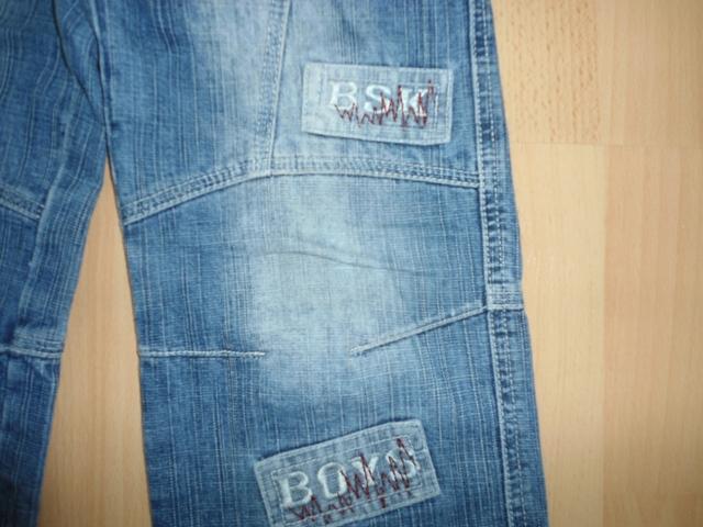 2a. chlapcenske rifle, velk. 116, BASKETBOY, 84% bavlna, 16% polyester, pas - guma, dlzka 71cm, od rozkroku 47cm, pas 30x2cm plus guma do 32x2cm, boky 36x2cm, predny sed 23cm, urcite niekto vyuzije