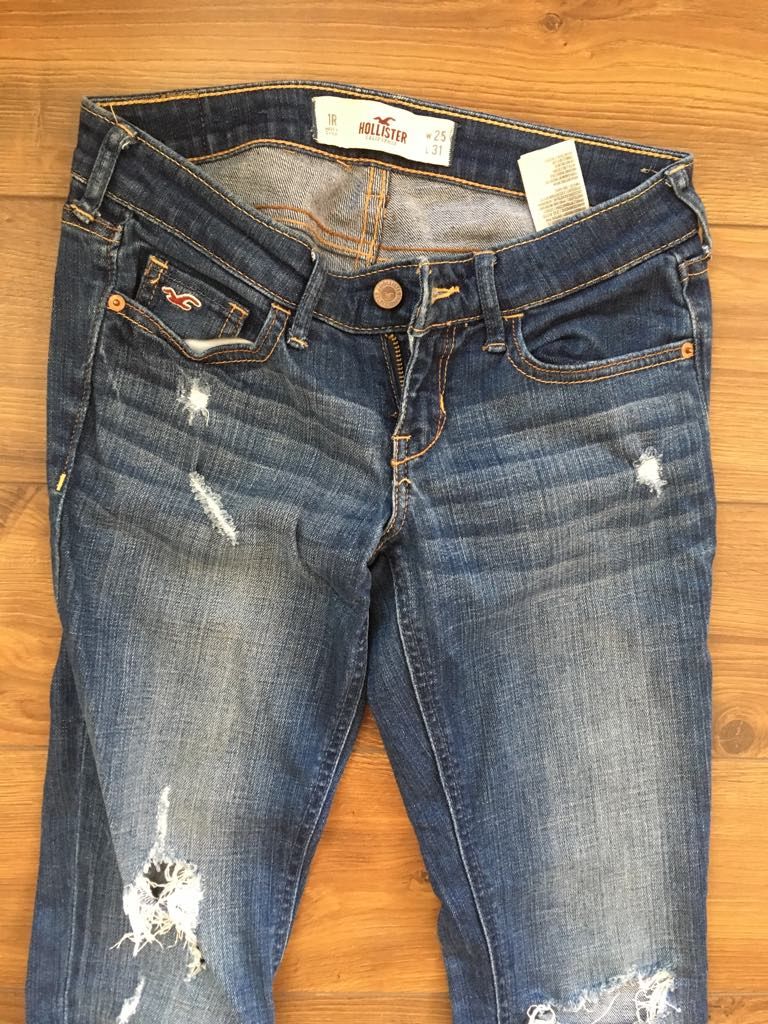 3x oblečené Hollister rifle, velkost W25 (1R, L31), neviem aká je to presne velkost, len odhadom na 13-15 rokov, pomeriam