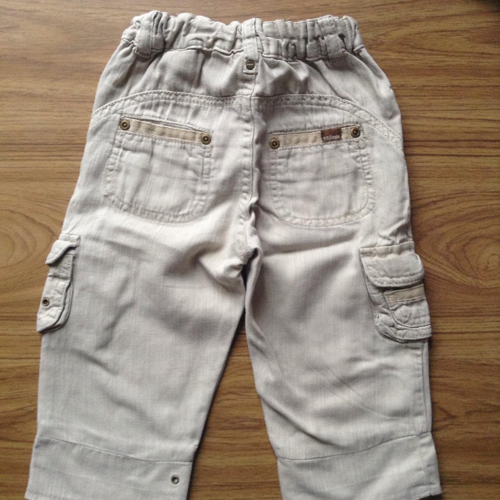 Letné tenké nohavice pre chlapcov,dajú sa nosiť ako dlhé nohavice,ale dajú sa aj vykasat,je tam na boku patentka,veľkosť je 9-12mesiacov..nosené,nase obľúbené,ale.top stav