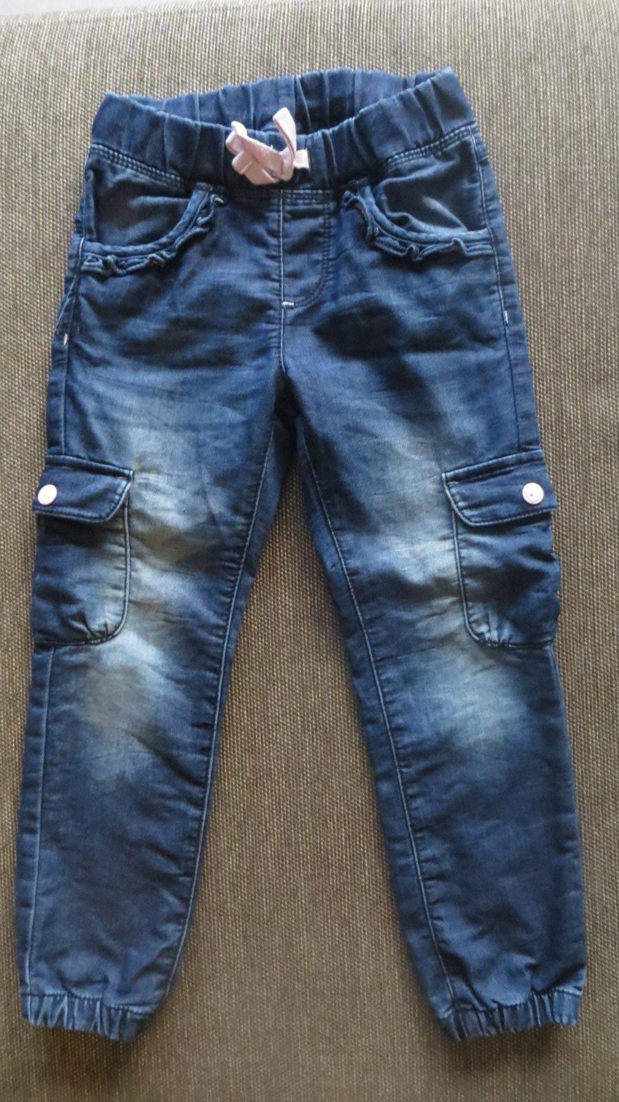 Suprove tensie vysuchane rifle s bocnymi vreckami, pas na gumu, cvoky na vreckach su trochu suchnute. Vonk.dlzka je 66cm, pas v klude 2x26cm a natiahne sa na max. 2x33cm.