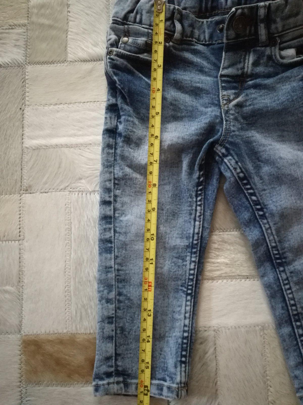 Krasne frajerske rifle znacky H&M, neposkodene, bez dier a flakov. Rozmery su uvedene na fotkach. Pas maju regulovatelny gumickou na gombiky. Krasne sedia na postave. Vynositelne dlhsie.