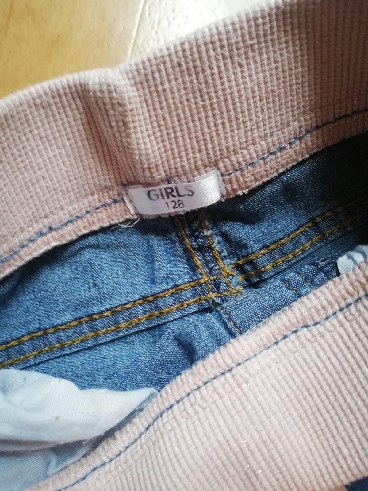 Pekné dievčenské rifle. -- v zachovalom stave bez akéhokoľvek poškodenia - v páse majú sťahovaciu gumičku - celková dĺžka 63 cm - šírka v páse 27 cm