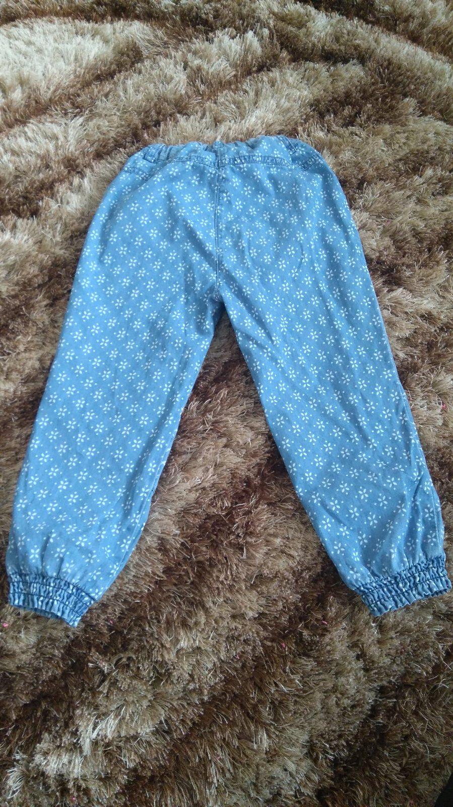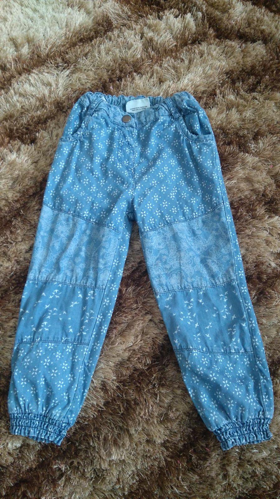 Predám džínsy jemného materiálu,je to tenší materiál, takže vhodné skôr na teplejšie obdobie. Majú vypratý vzhľad, sú s potlačou. V páse sa dajú regulovať gumou. V top stave.