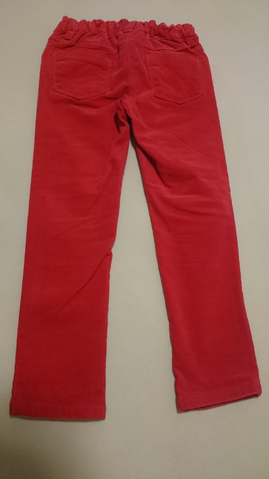 V jasnej červenej farbe ponúkam na predaj jedenkrát oblečené menčestráky s jemného pracikordu pre 3-4-ročné dievčatko. Nohavice s nastaviteľným pásom, vo veľmi dobrom stave.