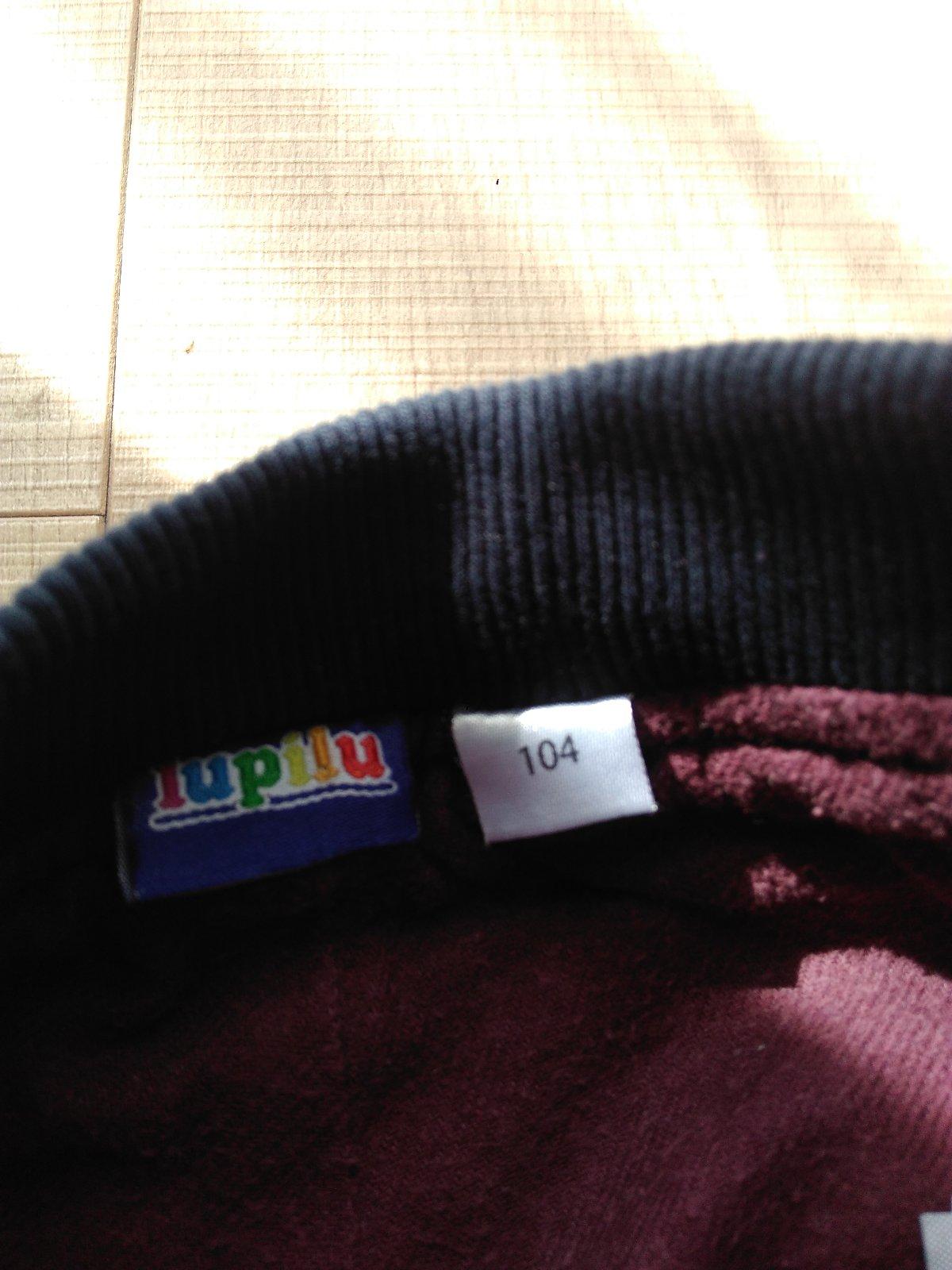 Predám rifle pre dievčatko veľkosť 104. Dĺžka 62, po zahnutí po ozdobu je dĺžka 57, šírka v páse 26.5cm.