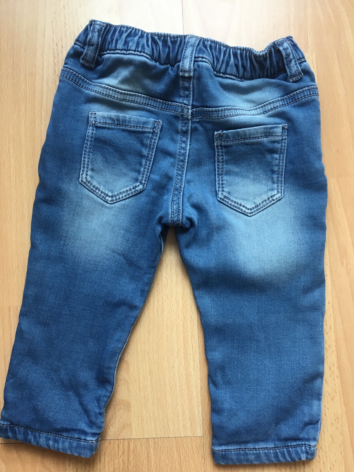Štýlové rifle, podšité teplakovinou, krásne sedia, elasticky materiál, veľkosť 6-9 mesiacov, urcite aj dlhsie.