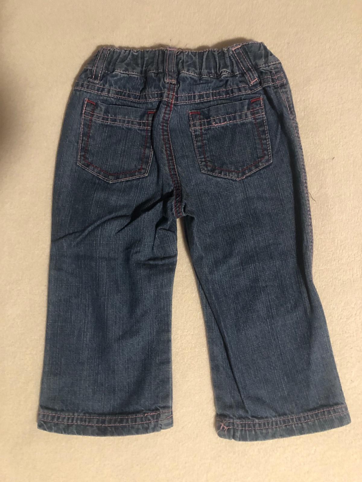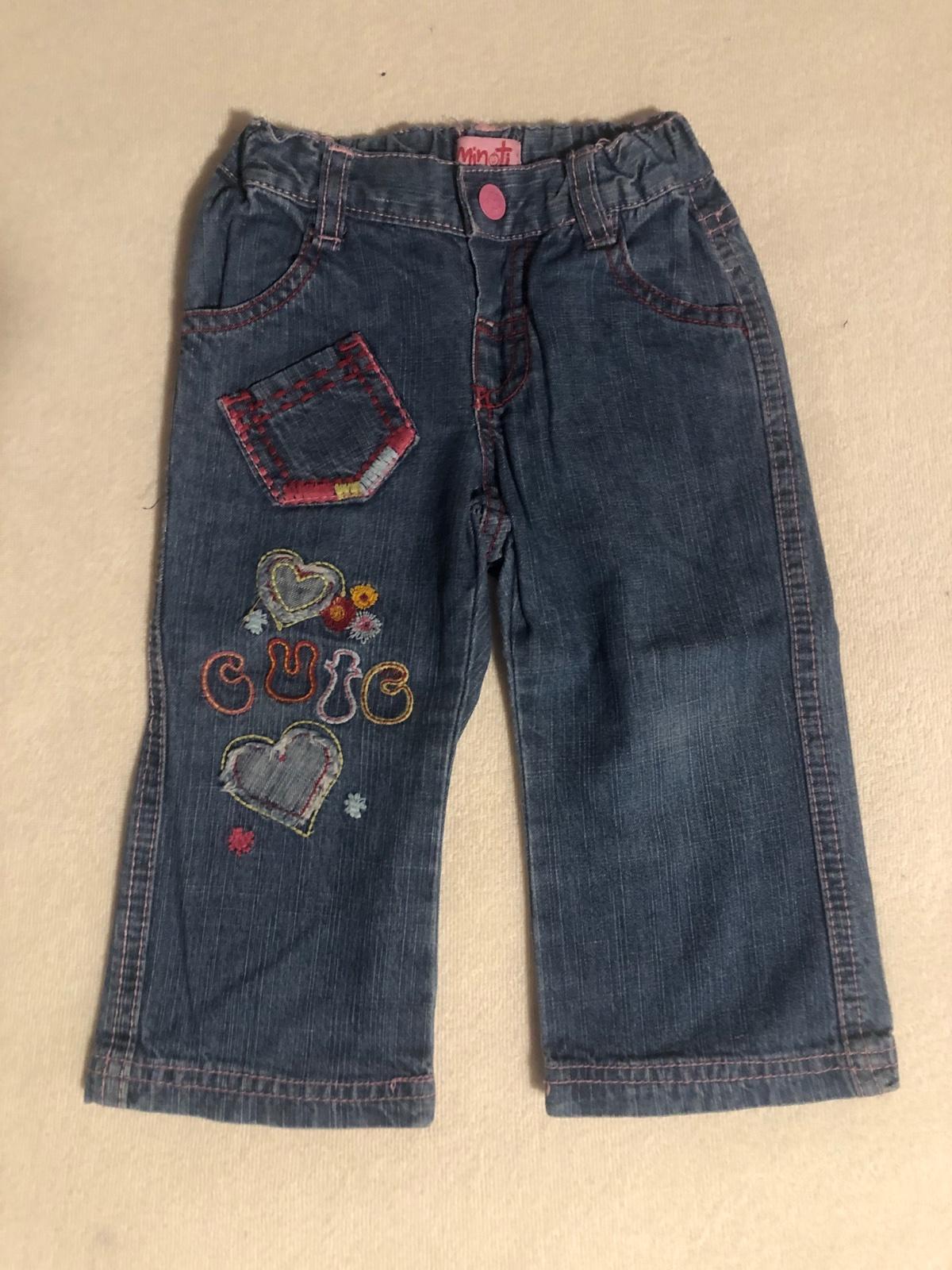 Predám vyšívané riflicky na 6-12 mes.