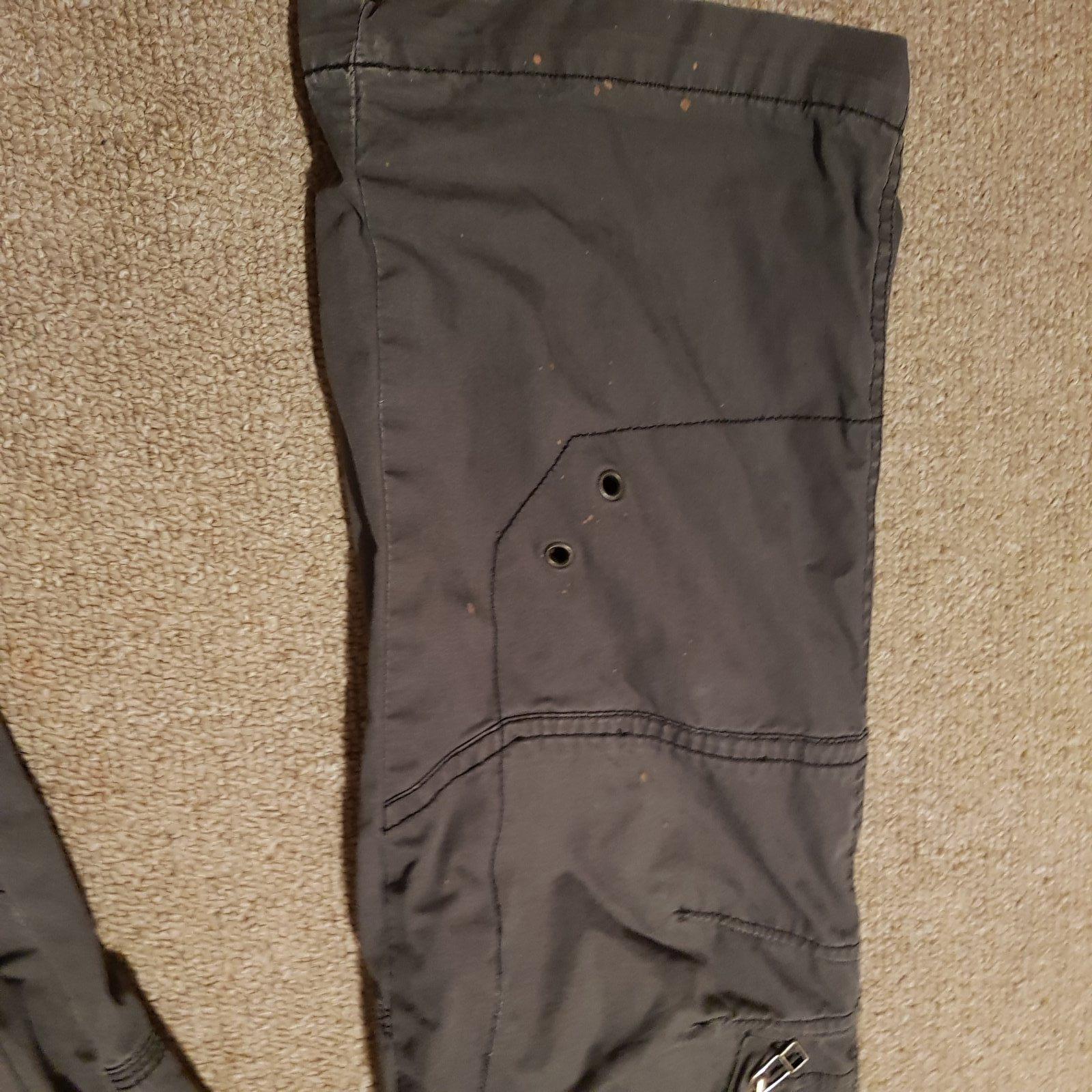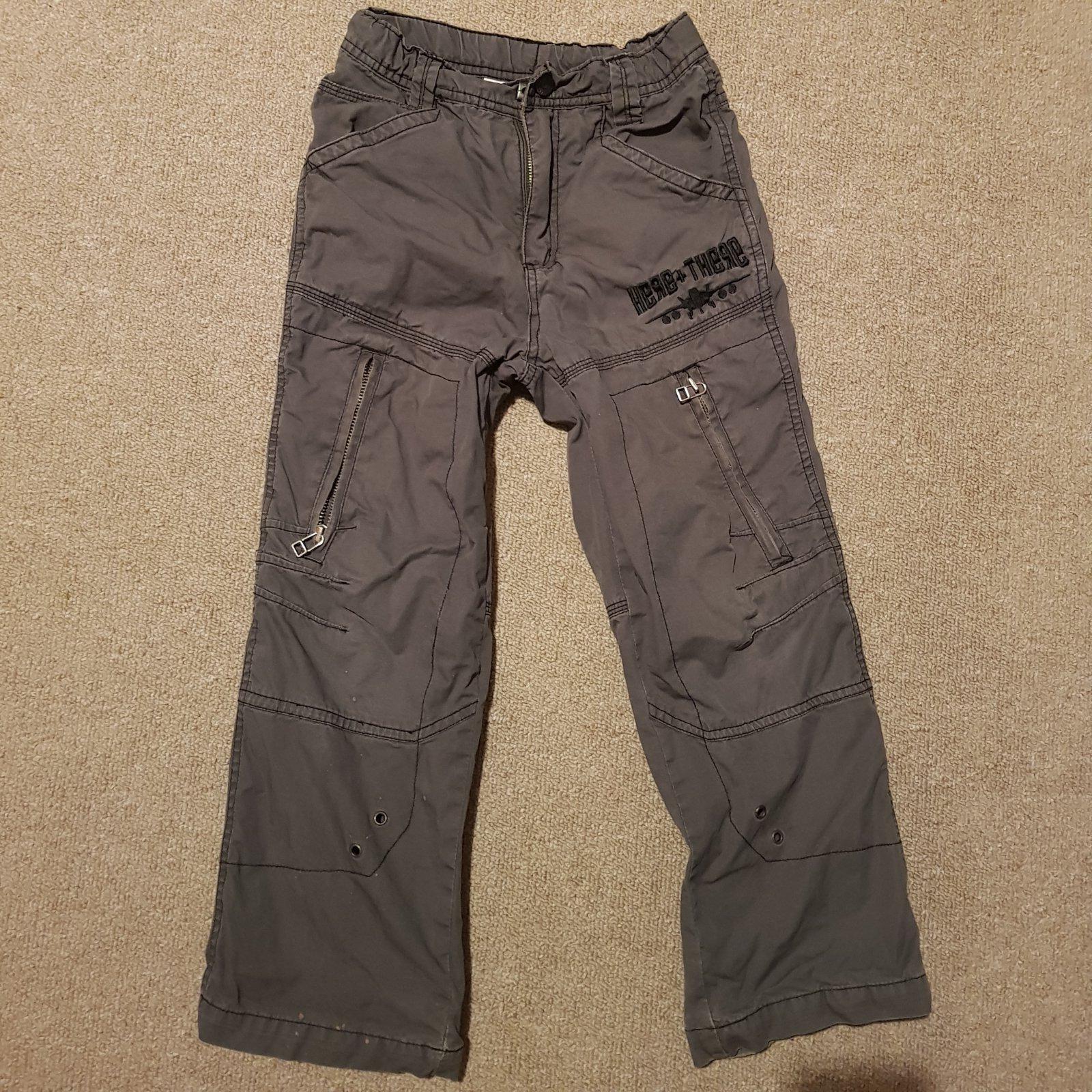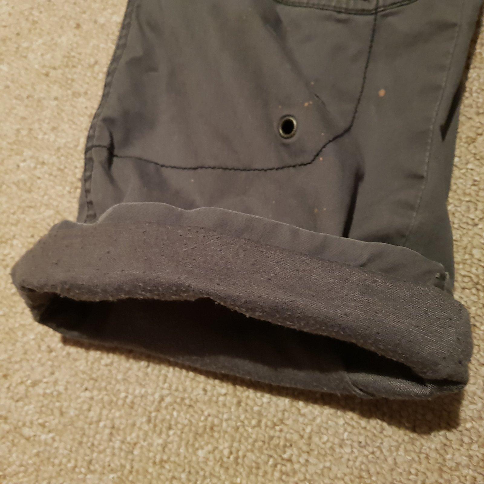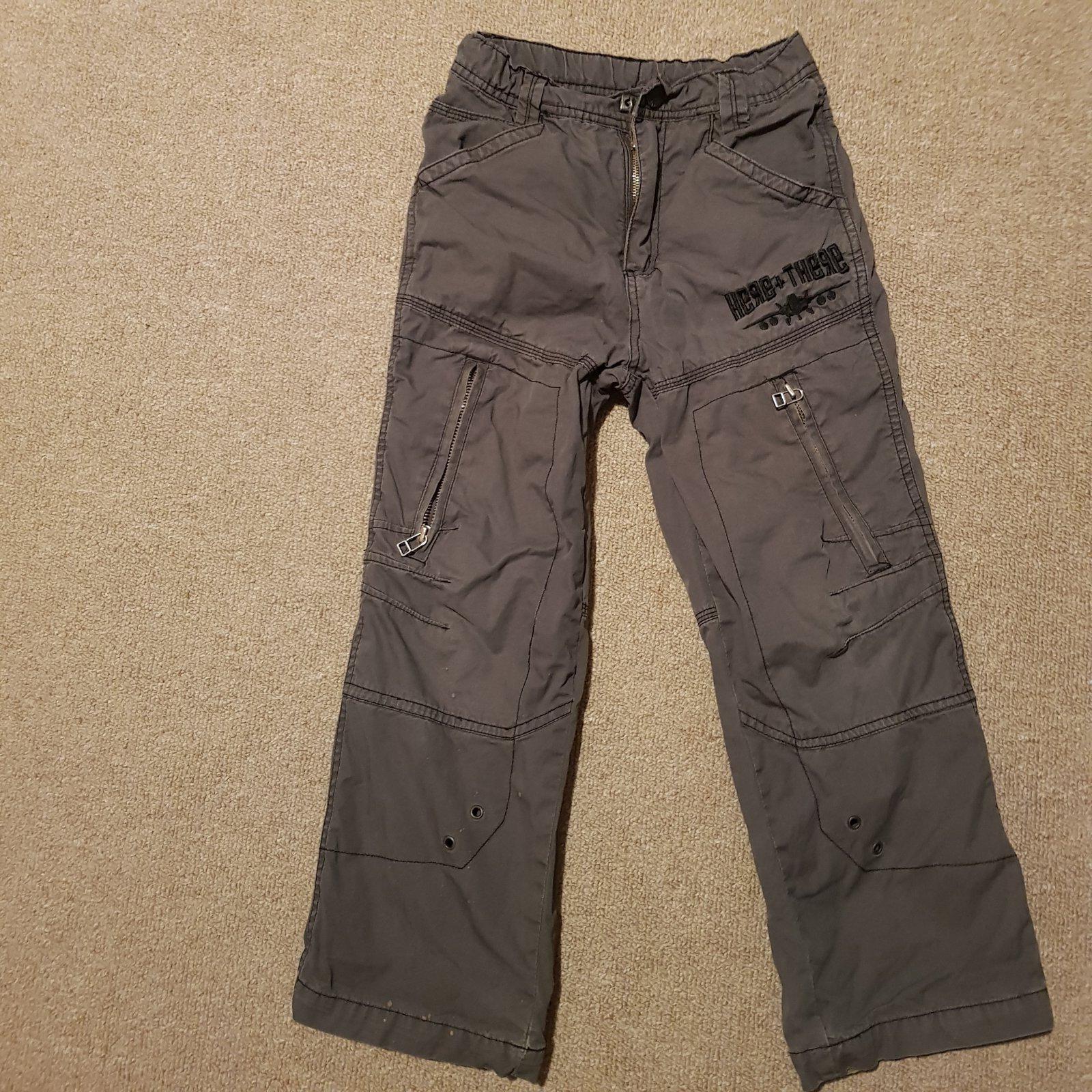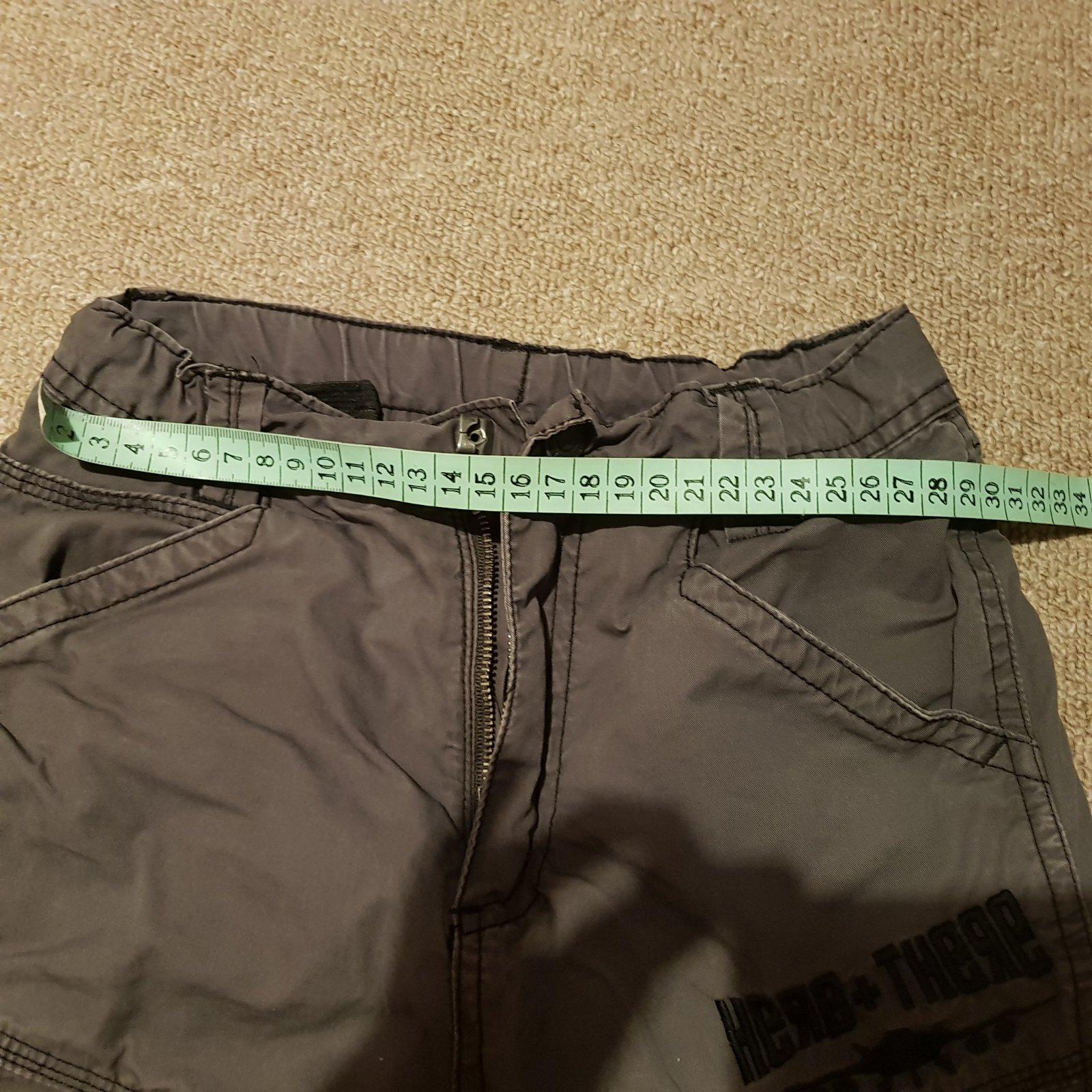 Pekný nosený stav, len na jednej nohavici v dolnej casti su malé bodky, vid foto. Vidno len z velmi blízka. V páse nastaviteľné.