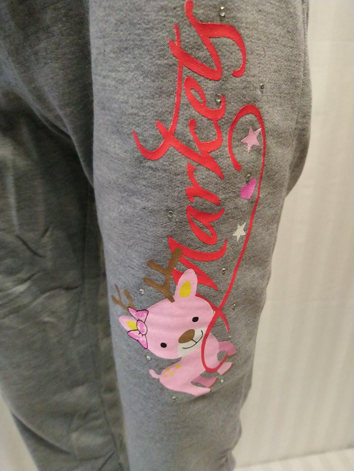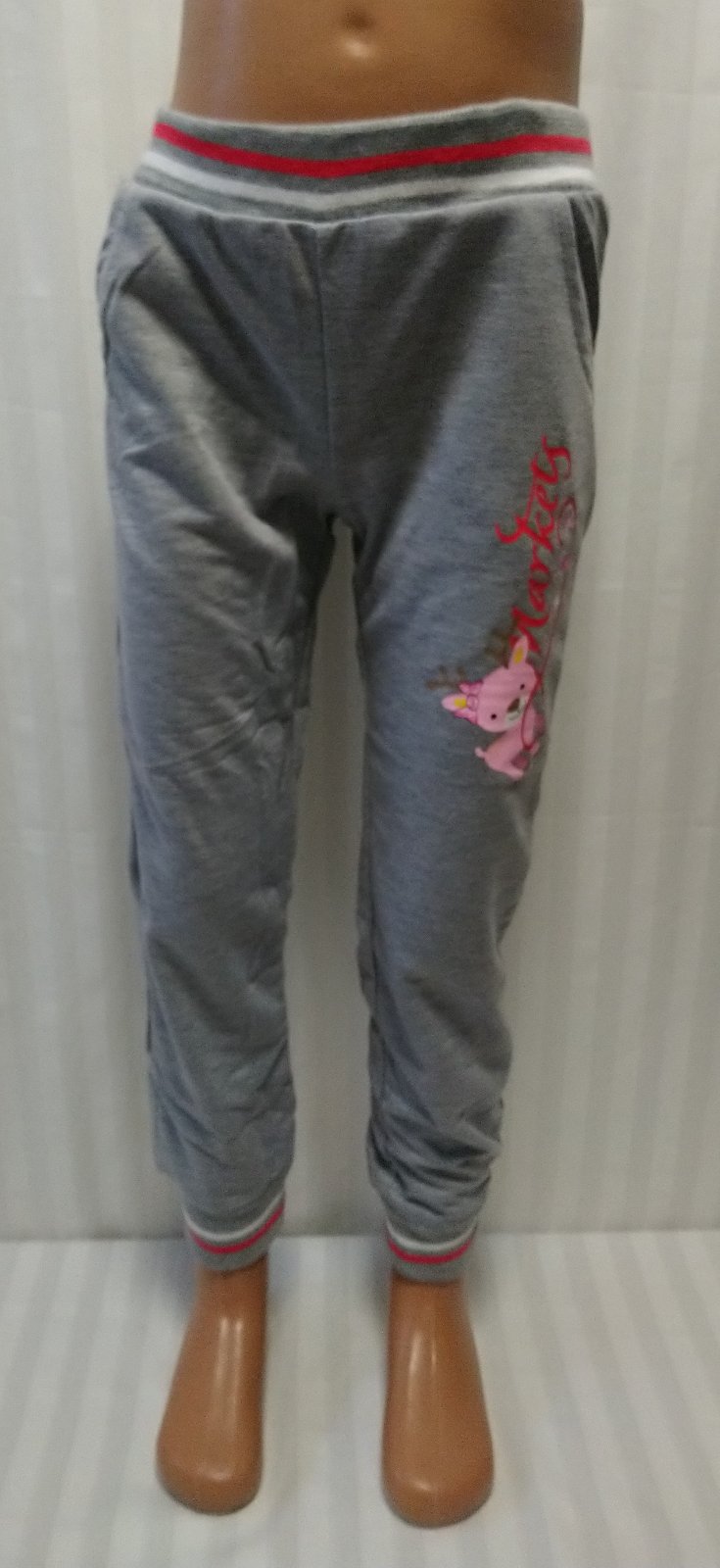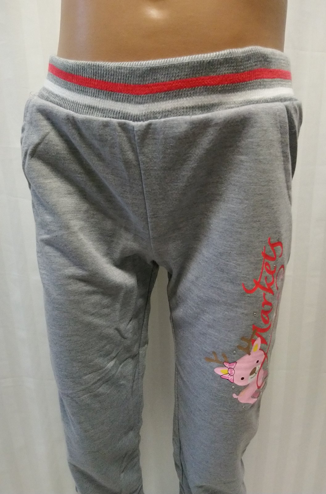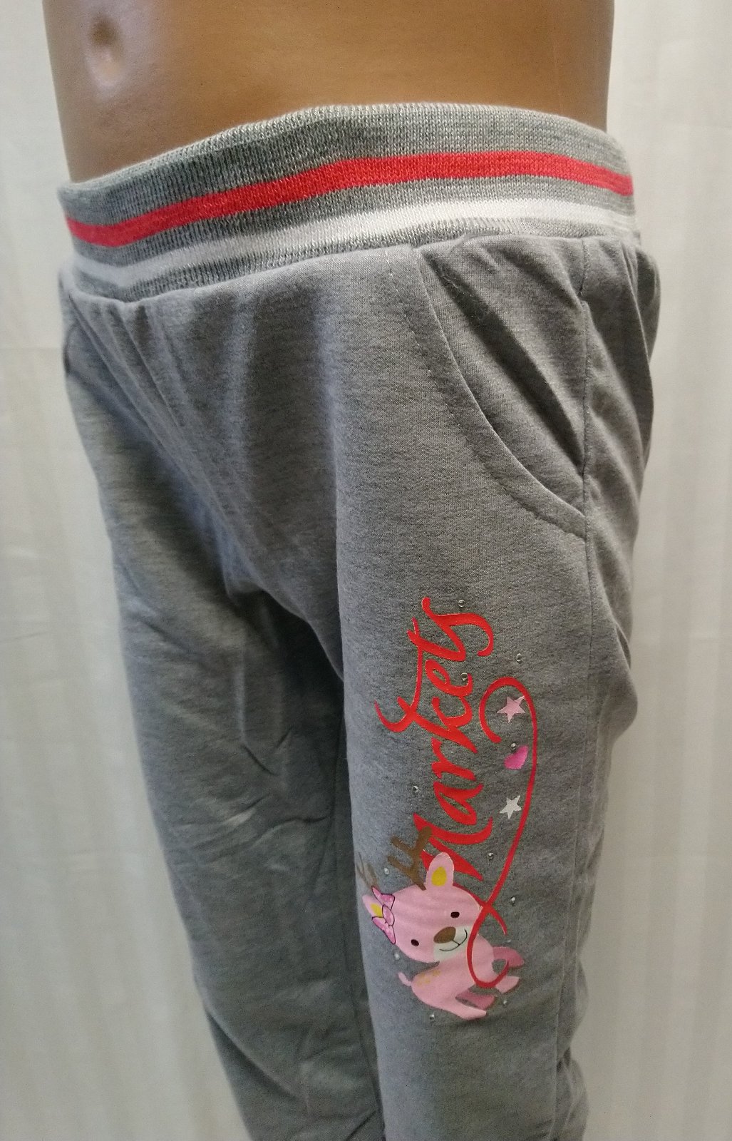 nové dievčenské svetlo sivé tepláky v páse na gumu, nohavice zakončené patentom, vrecká na prednom diele, motív Markey, vhodné jar až jeseň,