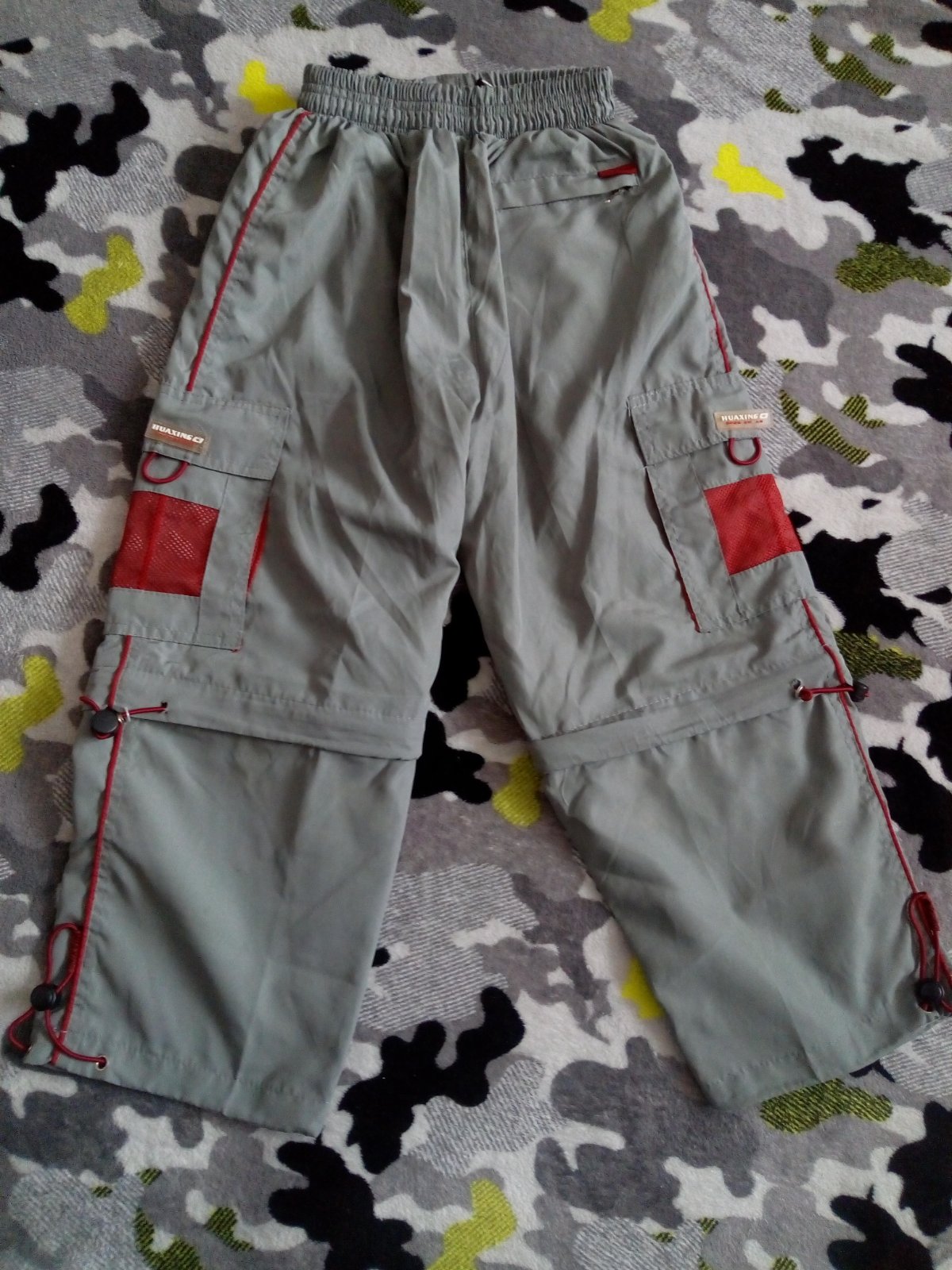 Pekné nohavice podšité sieťkovinou, Dajú sa zipsom odopnúť na kraťasy.Dĺ.68cm, rozkrok 45cm, guma v pase sa natiahne do maxima 37cmx2.