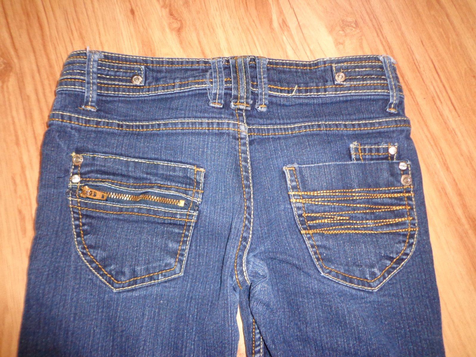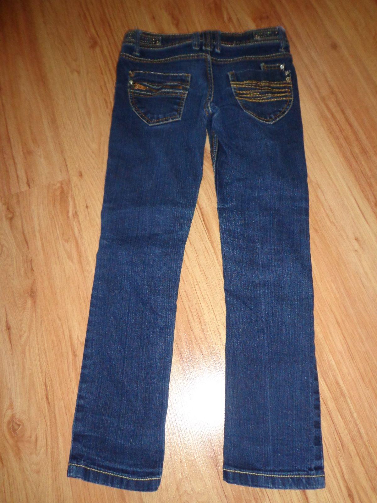 Rifle, skinny, zodpovedá veľkosť 7-8 r, nedajú sa stiahnuť na páse, cena: 4 Eur
