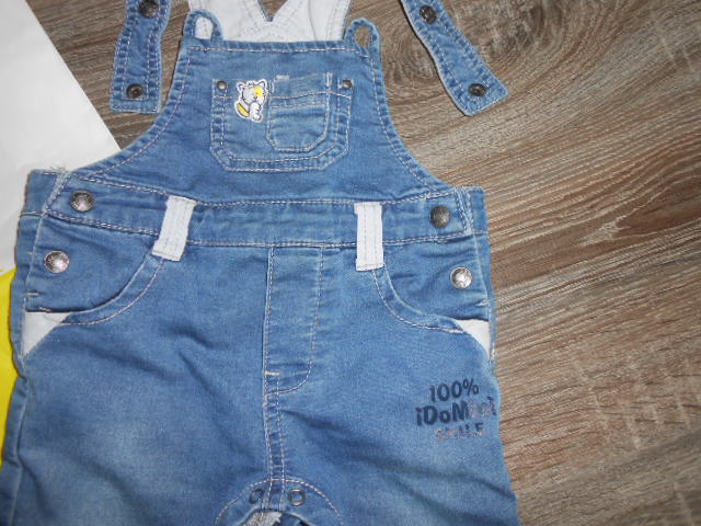 2.Ido perfektné rifle na traky pre malého frajera v 100% stave...dlžku trakov si viete prisposobit, zapínanie na nožičkach čo je super pri prebalovani a tiež su cvoky ešte po bokoch