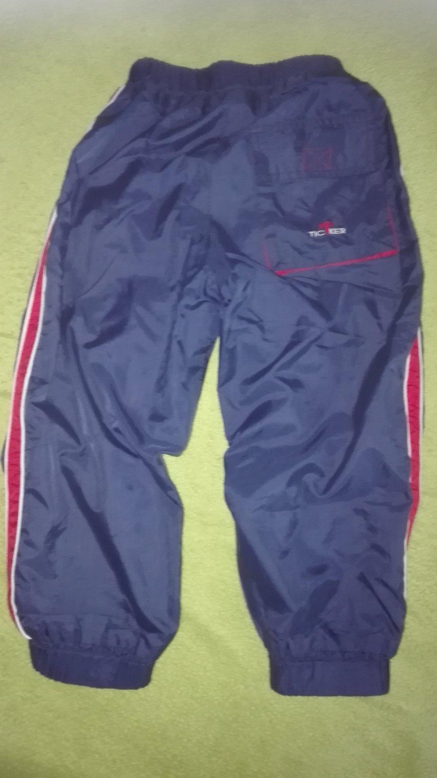Tepláčiky zn. Frog, výborne sedia na postave. Písaná veľkosť 98/104 - kľudne ich môžete nosiť už od 98. Majú dva vačky, farba už nie je ako nová, ale nič im nie je, nemajú fľaky ani diery.