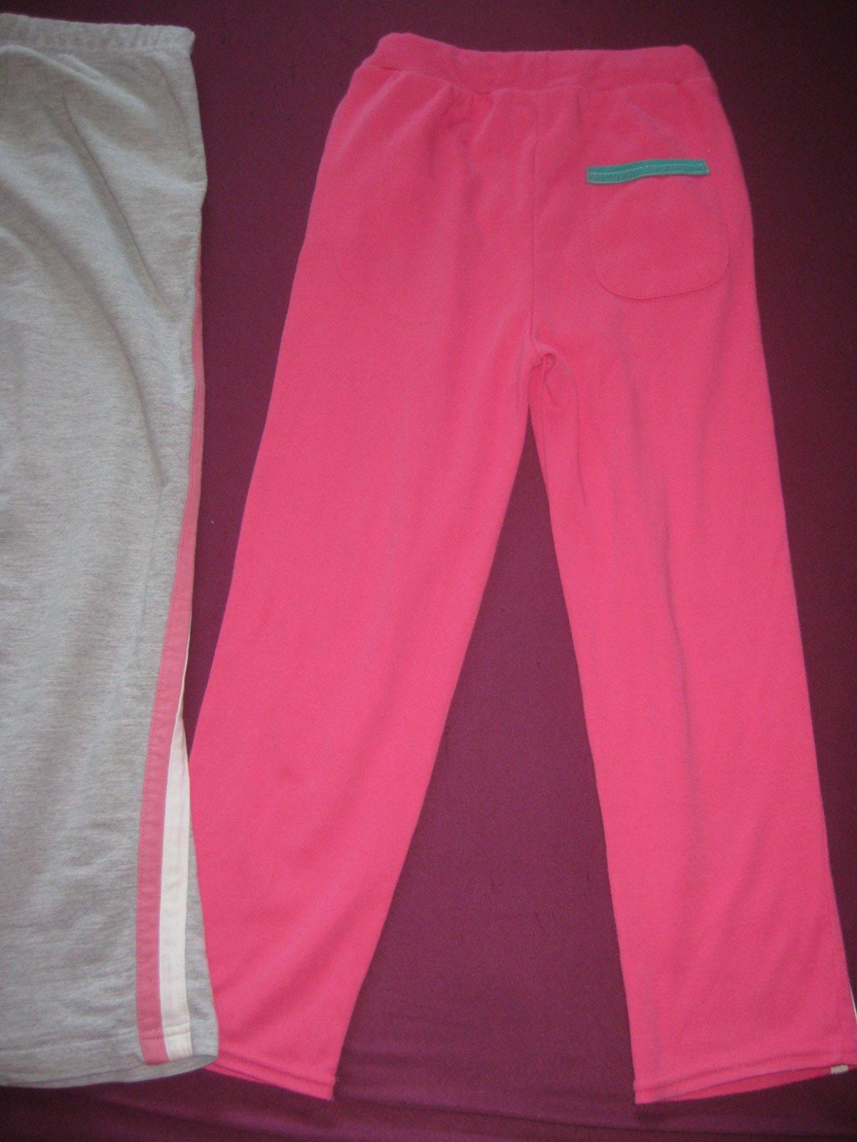 Tepláčiky sú v takom stave ako sú nafotené, nemajú žiadne dierky ani fľaky, ale sú dosť nosené, ružové majú žmolky.
