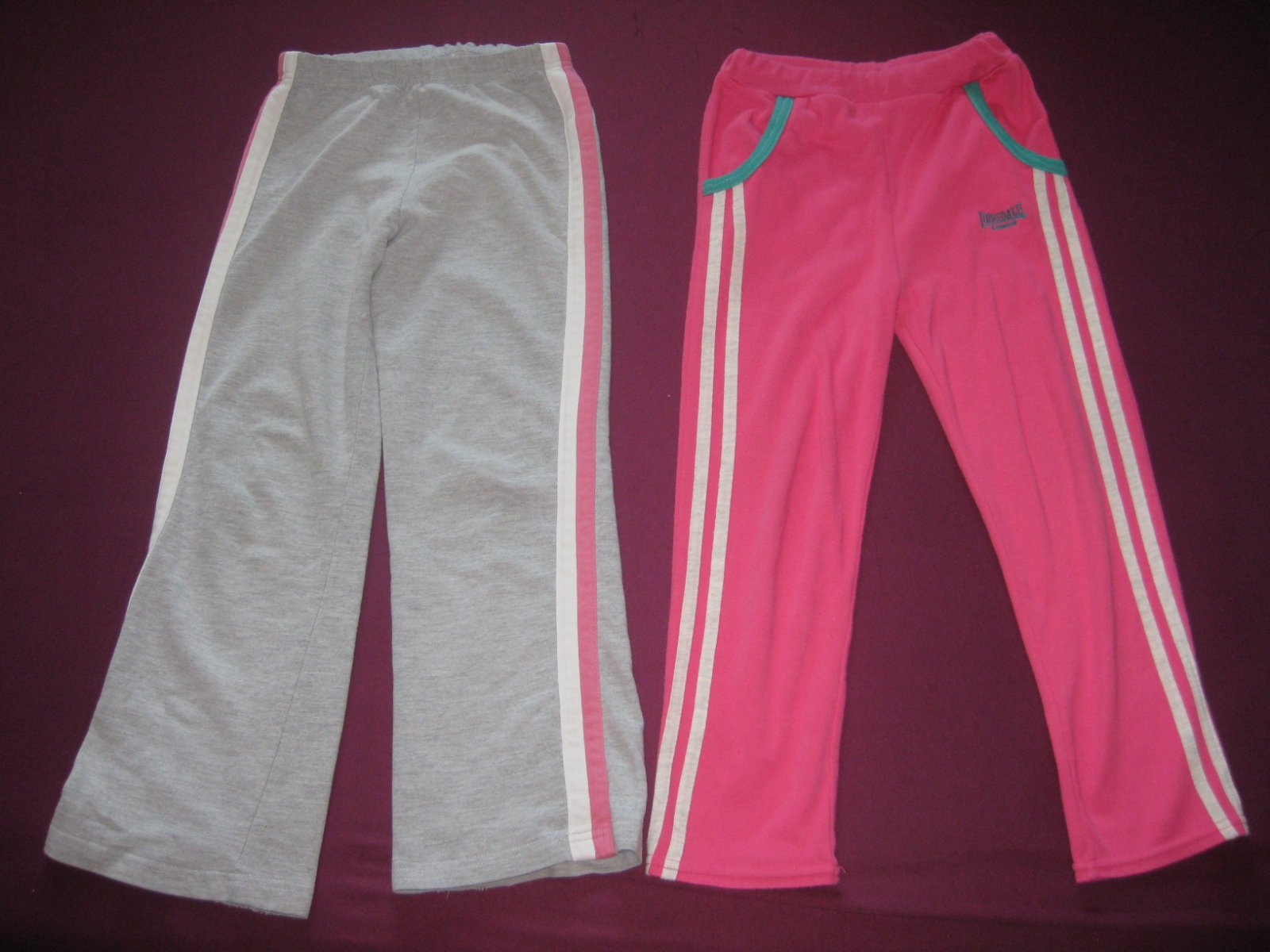 Dvoje tepláčiky , jedny sú ružové značky Lonsdale a druhé sú sivé.