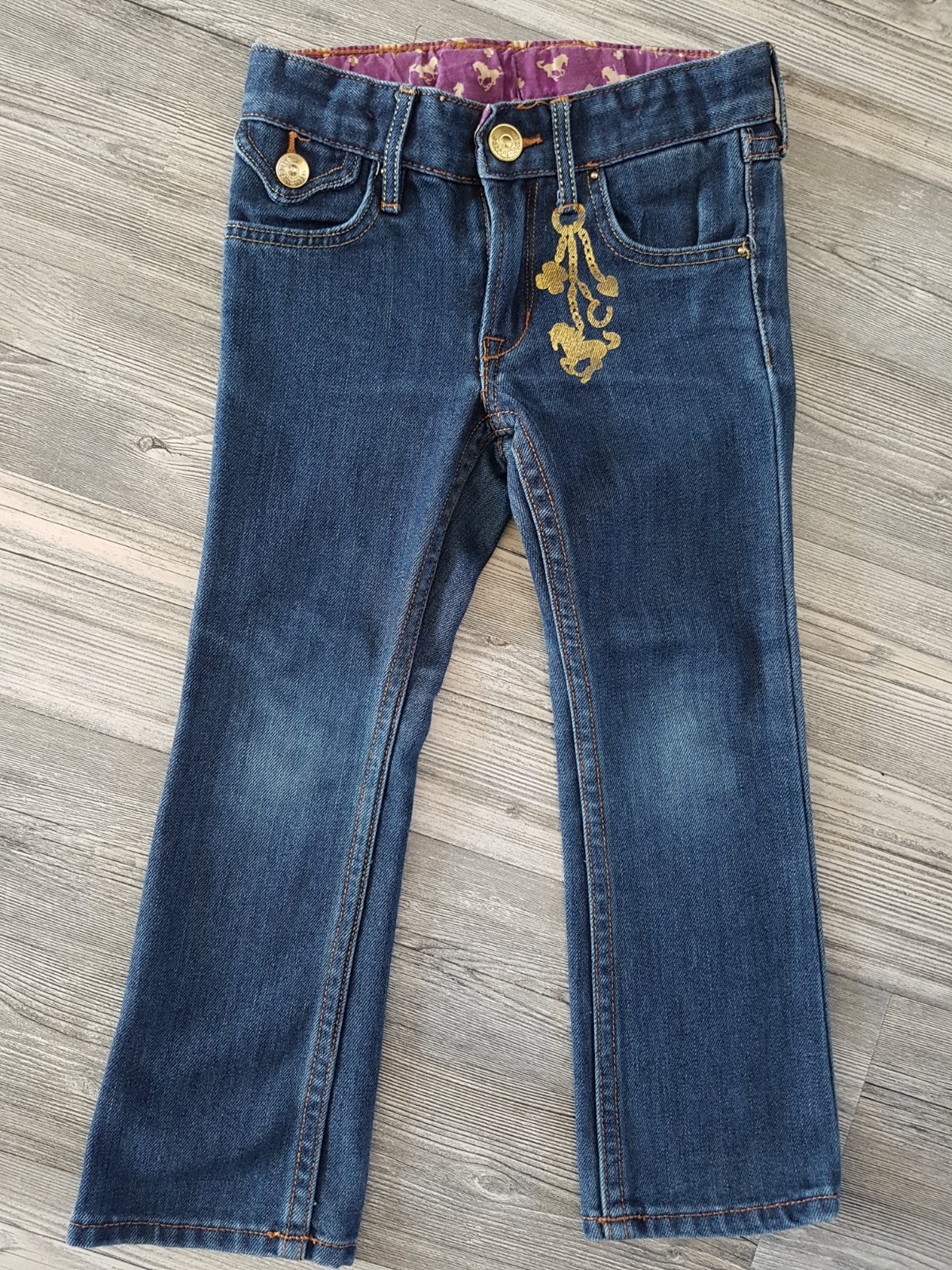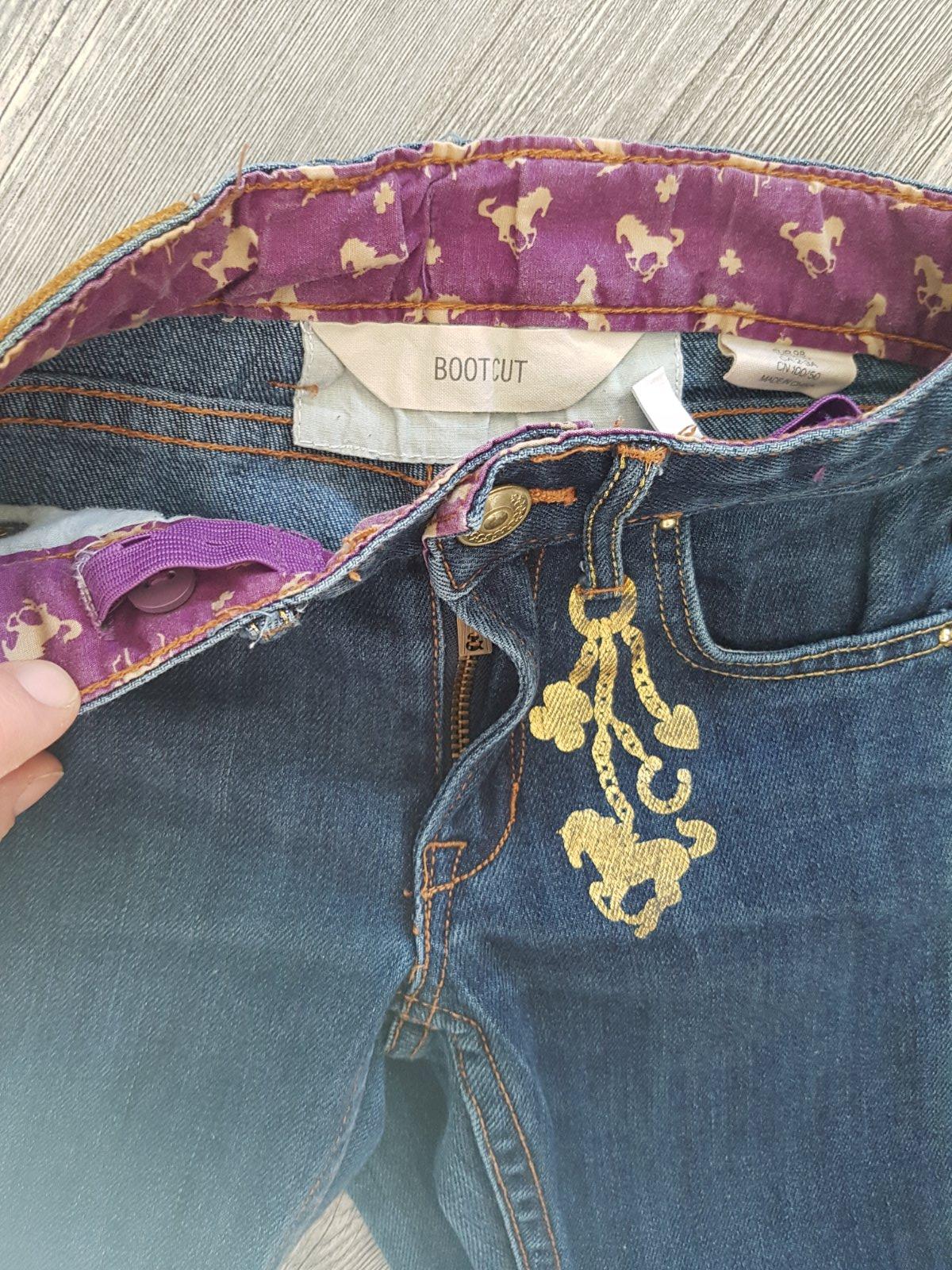 Top stav, ako nove. Vyborny material - tenka, makka, elasticka riflovina. Regulacia v pase. Vel 98, aj sedi.